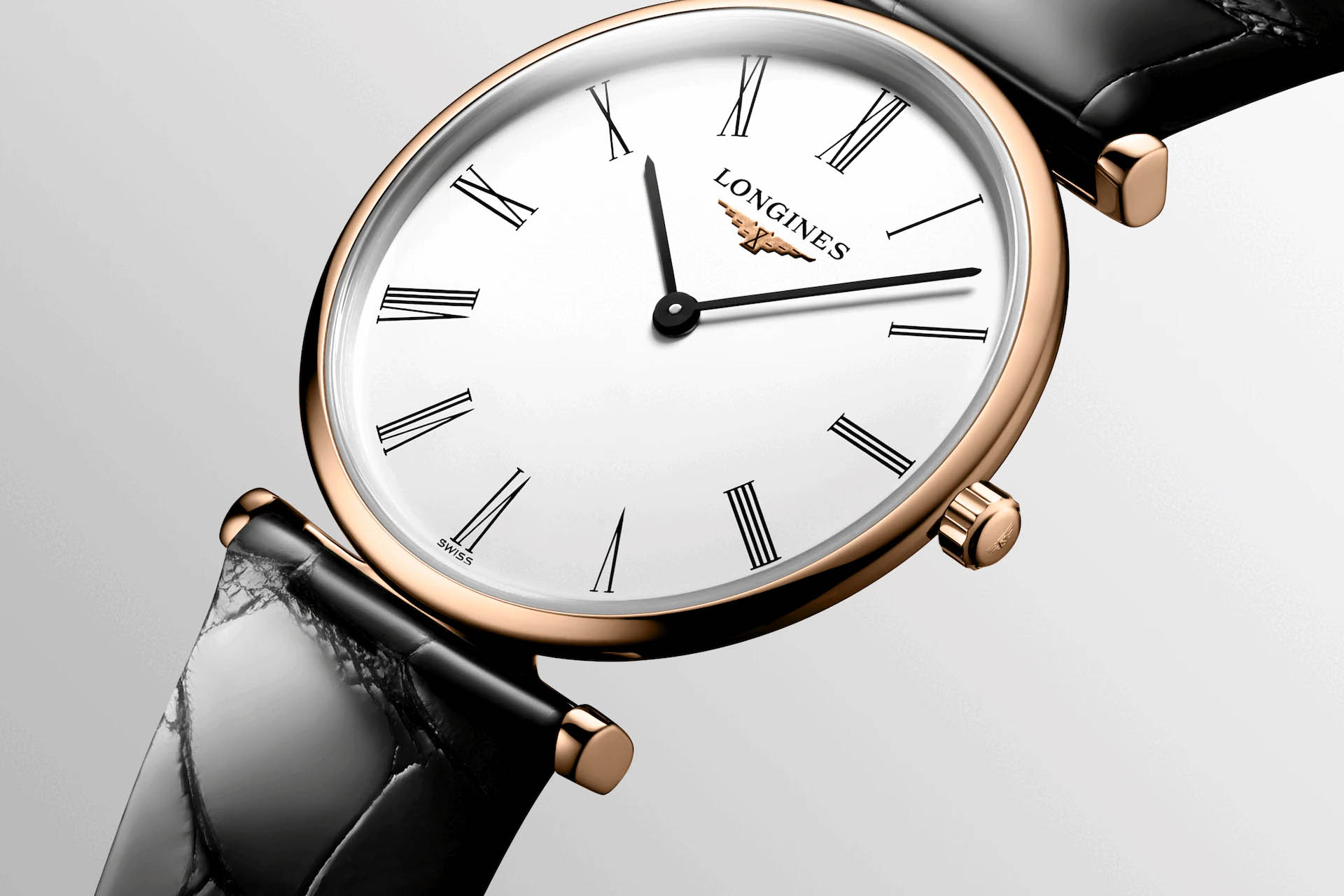 Женские швейцарские часы Longines La Grande Classique L4.512.1.91.2, кварцевый механизм с высокой точностью. Сапфировое стеклоСапфировое стеклоПрочный и надёжный материал из кристалла сапфира синтетического происхождения, характеризующийся особой твёрдостью и устойчивостью к царапинам и повреждениям. устойчивое к появлению царапин, обладающее высокой прозрачностью. Корпус часов изготовлен из стали с PVD-покрытиемPVDУльтратонкое покрытие наносится в технике вакуумного напыления, сочетает в себе нитрид титана особой прочности со слоем золота или оксида хрома. Несёт в себе декоративную или защитную функцию.. Римская индикация времени. Эта серия является символом классической элегантности и вневременной утонченности Longines и отличается очень тонким профилем. Класс водозащиты: 30 метров, позволит защитить корпус от случайных брызг или капель дождя. Ремешок из кожи аллигатора на стандартной застёжке.