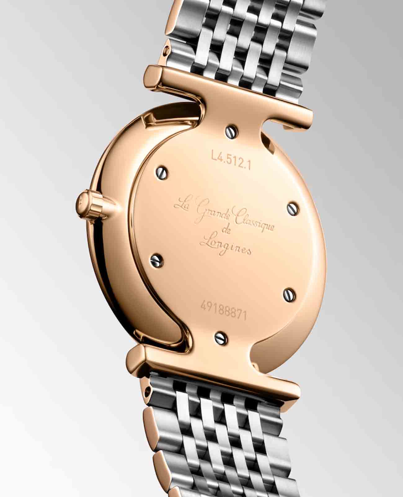 Женские швейцарские часы Longines La Grande Classique L4.512.1.97.7 воплощают в себе гармонию элегантности и функциональности. Оснащённые высокоточным кварцевым механизмом, они демонстрируют непревзойденную точность и стабильность работы. Сапфировое стеклоСапфировое стеклоПрочный и надёжный материал из кристалла сапфира синтетического происхождения, характеризующийся особой твёрдостью и устойчивостью к царапинам и повреждениям. характеризуется повышенной устойчивостью к царапинам и отличной прозрачностью, что обеспечивает идеальную видимость циферблата в любых условиях.