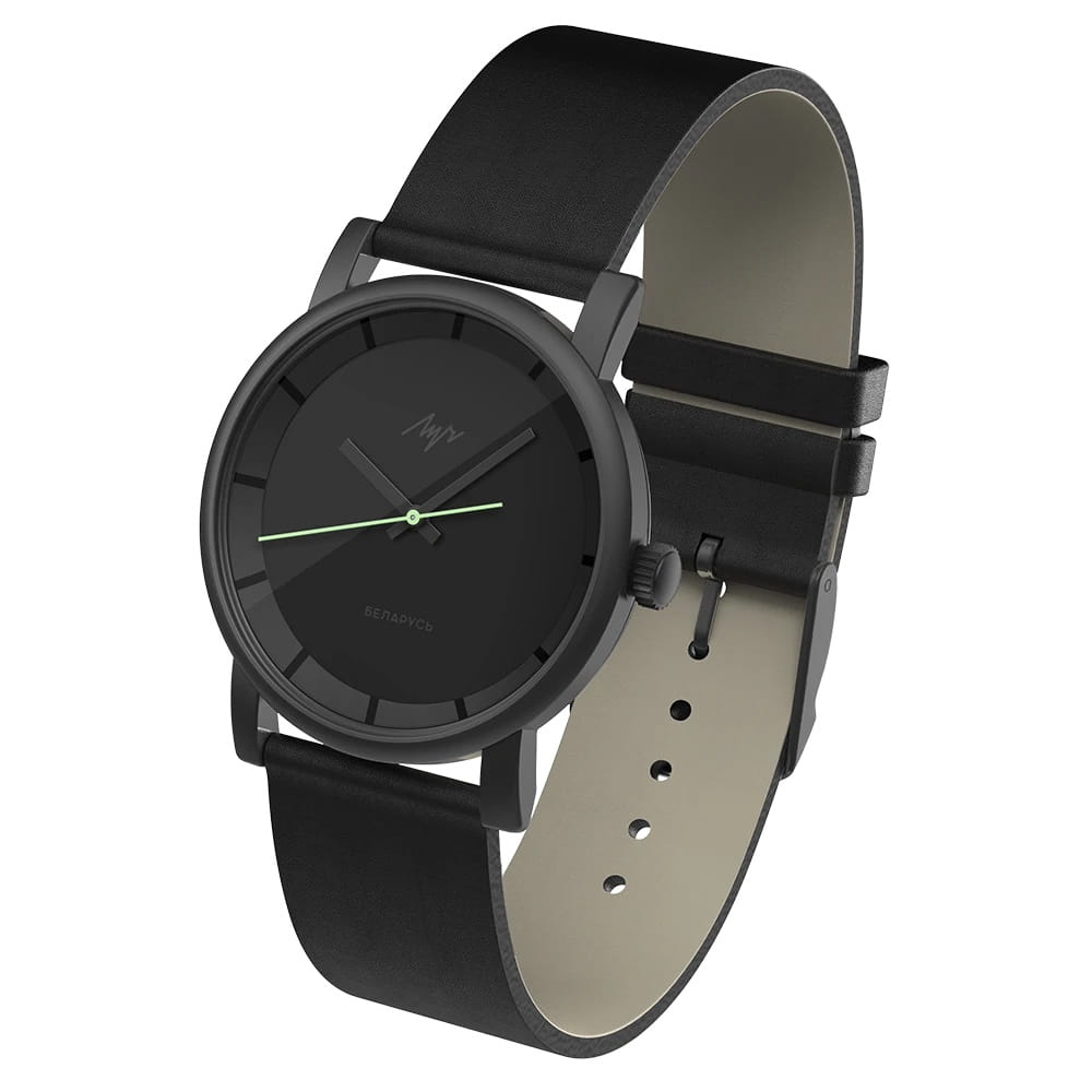 Мужские наручные часы Луч Blackout 2 778449725 — это стильное сочетание элегантности и современного дизайна. Круглый корпус диаметром 37.6 мм и толщиной 9.1 мм выполнен из нержавеющей стали с DLC-покрытиемDLC-покрытиеDiamond like carbon - одно из лучших видов покрытия, представляющее собой углерод с алмазными свойствами. На поверхность материала наносятся распавшиеся молекулы углерода, превращающиеся в плёнку из алмазоподобных связей, которая перенимает твёрдость алмаза. черного цвета, что придает модели особый изысканный вид. Циферблат защищен минеральном стекломМинеральное стеклоМинеральное стекло представляет собой искусственно выращенный минерал кварца. Такое стекло отличается особой устойчивостью к повреждениям и царапинам. Уступает по некоторым качествам сапфировому стеклу., обеспечивающим устойчивость к царапинам. Метки в виде штрихов. Часы оснащены кварцевым механизмом высокой точности, а кожаный ремешок на стандартной застёжке гарантирует комфортную посадку на запястье. Водозащита 30 метров позволит защитить корпус от случайных брызг или капель дождя. Луч — отличный выбор для тех, кто ценит утонченность и качество.