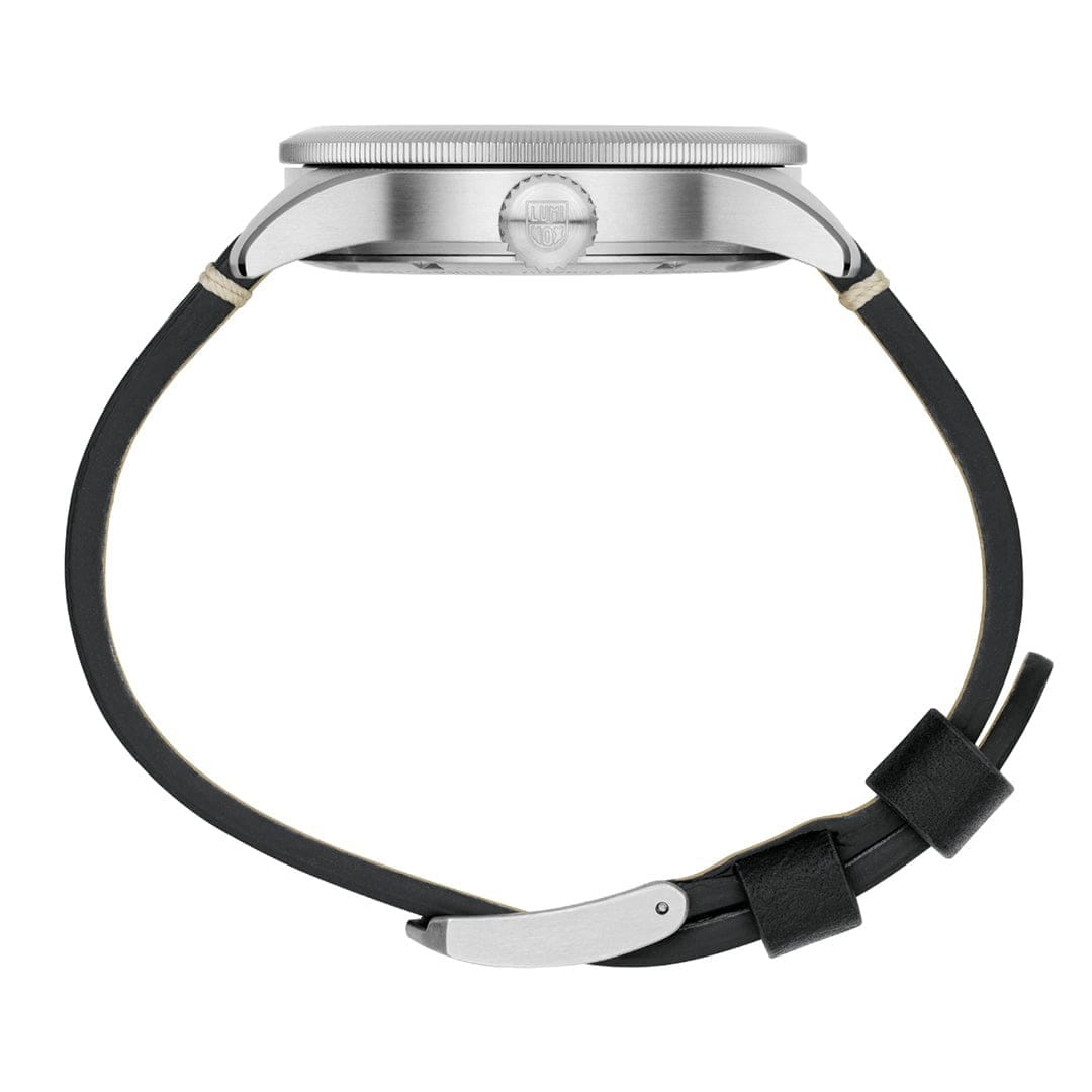 Эти часы Luminox P-38 LIGHTNING XA.9527 представляют собой сочетание классического дизайна и современных технологий. Они оснащены 42-миллиметровым бежевым циферблатом, защищенным сапфировым стекломСапфировое стеклоПрочный и надёжный материал из кристалла сапфира синтетического происхождения, характеризующийся особой твёрдостью и устойчивостью к царапинам и повреждениям. с антибликовым покрытиемАнтибликовое покрытиеСлой оксида металла в 0,13-0,3 микрон, благодаря которому стекло часов не бликует и не отражает свет. Антибликовое покрытие уменьшает отражение света в 10 раз, обеспечивая отличную читаемость показателей циферблата., и стильным черным кожаным ремешком с фирменной классической застежкой застежкой Luminox. Часы обладают функцией GMTGMTОтображение времени второго часового пояса.Такая функция особенно актуальна для путешественников и бизнесменов,которые общаются с людьми из разных стран,теперь вы всегда будете знать,какой час у вашего партнёра или близкого человека., что позволяет отслеживать время в двух часовых поясах одновременно, делая их идеальными спутниками для путешественников по всему миру. Дизайн вдохновлен традиционными навигационными часами B-Uhr 1940-х годов, с характерным треугольником и двумя точками под отметкой 12 часов, что обеспечивает быструю ориентацию и легкость считывания времени. Механизм на базе швейцарского кварца RONDA 515.24H обеспечивает работу часов до 50 месяцев без замены батареи, а постоянное свечение циферблата сохраняется до 25 лет благодаря LLTLLTLLT — это автономный механизм подсветки, основанный на использовании микроскопических газонаполненных элементов. Специальные герметичные капсулы из боросиликатного стекла, интегрированные в циферблат, генерируют свечение без необходимости подключения к внешним источникам энергии. Для их работы не требуется ни дополнительный свет, ни механическое воздействие (например, нажатие кнопки). Свечение возникает благодаря химическому процессу: реакция между тритием, заключенным в капсулах, и люминофорным покрытием создает стабильное автономное освещение. Технология обеспечивает энергетическую независимость и долговечность подсветки.-подсветке. Корпус выполнен из нержавеющей стали 316L и выдерживает погружение на глубину до 100 метров. Завинчивающаяся заводная головка и прозрачная задняя крышка из нержавеющей стали добавляют прочности и эстетической привлекательности.