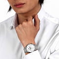Наручные часы Maserati Epoca R8873618034 — воплощение элегантности и стиля от знаменитого итальянского бренда. Эти часы-хронографХронографФункция позволяет измерять отрезки времени с особой точностью: часы, минуты, секунды. Верным признаком хронографа является наличие на циферблате 3 дополнительных окошек-счётчиков. с секундомеромСекундомерСекундоме́р — прибор, способный измерять интервалы времени с точностью до долей секунды. созданы для тех, кто ценит качество и изысканный дизайн. Корпус из нержавеющей стали диаметром 42 мм обладает средней величиной, что делает их идеальным выбором для каждодневного ношения. Четкий белый циферблат с метками в виде рисок создает стильный контраст, подчеркивая утонченность и строгость дизайна. Люминесцентное покрытиеЛюминесцентное покрытиеПозволяет считывать показания времени в темноте. Производители наносят на стрелки, часовые индексы, безель или поверхность циферблата светонакопительный состав, дающий холодное свечение. на стрелках обеспечивает отличную видимость в темноте. Минеральное стеклоМинеральное стеклоМинеральное стекло представляет собой искусственно выращенный минерал кварца. Такое стекло отличается особой устойчивостью к повреждениям и царапинам. Уступает по некоторым качествам сапфировому стеклу. надежно защищает циферблат от царапин и повреждений. Водостойкость до 100 метров (10 АТМ) гарантирует, что они выдержат как случайные брызги, так и плавание. Стальной браслет с раскладной застёжкойРаскладная застёжкаТакой тип застёжки используется только на браслетах из металла. Она никогда не раскрывается полностью, происходит разделение на 2 и более частей. Раскладывающая застёжка снизит вероятность потери часов к минимуму. не только обеспечивает комфортное ношение, но и добавляет модели дополнительное очарование. Часы Maserati Epoca R8873618034 станут отличным дополнением как делового, так и повседневного образа, подчеркивая ваш индивидуальный стиль и внимание к деталям.