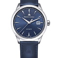 Maurice Lacroix 1975 756008-SS001-430-4 — изящная модель в винтажном стиле с современным исполнением и безупречным вниманием к деталям. Корпус диаметром 40 мм изготовлен из нержавеющей стали с сочетанием полированной и сатинированной отделки. Элегантные пропорции подчёркнуты тонким профилем. Циферблат защищён сапфировым стекломСапфировое стеклоПрочный и надёжный материал из кристалла сапфира синтетического происхождения, характеризующийся особой твёрдостью и устойчивостью к царапинам и повреждениям. с двойным антибликовым покрытиемАнтибликовое покрытиеСлой оксида металла в 0,13-0,3 микрон, благодаря которому стекло часов не бликует и не отражает свет. Антибликовое покрытие уменьшает отражение света в 10 раз, обеспечивая отличную читаемость показателей циферблата., обеспечивающим высокую прозрачность. Синий циферблат с солнечным узором оформлен в духе 70-х годов: родиевые стрелки, скошенные индексы и окно даты на «3 часах». Внутри установлен швейцарский механизм, отличающийся стабильностью и точностью. Модель на кожаном ремешке и стандартной застежке для надёжной и комфортной посадки. Водонепроницаемость до 100 метров делает часы практичными для ежедневного ношения. Maurice Lacroix 1975 — утончённая ретро-эстетика с акцентом на стиль и комфорт.