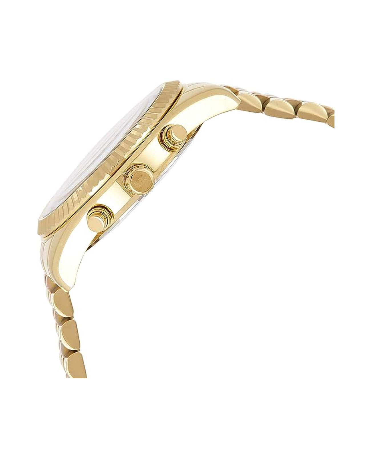 Женские американские часы-хронографХронографФункция позволяет измерять отрезки времени с особой точностью: часы, минуты, секунды. Верным признаком хронографа является наличие на циферблате 3 дополнительных окошек-счётчиков. с секундомеромСекундомерСекундоме́р — прибор, способный измерять интервалы времени с точностью до долей секунды. и с минеральным стекломМинеральное стеклоМинеральное стекло представляет собой искусственно выращенный минерал кварца. Такое стекло отличается особой устойчивостью к повреждениям и царапинам. Уступает по некоторым качествам сапфировому стеклу. Michael Kors Lexington MK6473, кварцевый механизм с высокой точностью. Корпус часов изготовлен из нержавеющей стали с PVD-покрытиемPVDУльтратонкое покрытие наносится в технике вакуумного напыления, сочетает в себе нитрид титана особой прочности со слоем золота или оксида хрома. Несёт в себе декоративную или защитную функцию.. Три дополнительных индикатора на циферблате. 12-ти и 24-х часовой формат. Окошко даты находится в положении между 4 и 5 часами. Стрелки с люминесцентным покрытиемЛюминесцентное покрытиеПозволяет считывать показания времени в темноте. Производители наносят на стрелки, часовые индексы, безель или поверхность циферблата светонакопительный состав, дающий холодное свечение.. Класс водозащиты: 100 метров, позволит плавать, нырять и заниматься другими водными видами спорта. Стальной браслет из нержавеющей стали с PVD-покрытиемPVDУльтратонкое покрытие наносится в технике вакуумного напыления, сочетает в себе нитрид титана особой прочности со слоем золота или оксида хрома. Несёт в себе декоративную или защитную функцию. на раскладной застёжкеРаскладная застёжкаТакой тип застёжки используется только на браслетах из металла. Она никогда не раскрывается полностью, происходит разделение на 2 и более частей. Раскладывающая застёжка снизит вероятность потери часов к минимуму..
