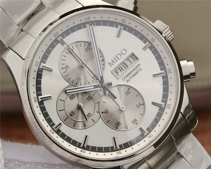Практичные и многофункциональные часы великолепно сидят на руке и подчеркивают мужественность и силу своего обладателя. Мужские наручные часы Commander II Chronograph Часы-хронографХронографФункция позволяет измерять отрезки времени с особой точностью: часы, минуты, секунды. Верным признаком хронографа является наличие на циферблате 3 дополнительных окошек-счётчиков. с секундомеромСекундомерСекундоме́р — прибор, способный измерять интервалы времени с точностью до долей секунды.. Круглый стальной корпус. Циферблат с люминесцентным покрытиемЛюминесцентное покрытиеПозволяет считывать показания времени в темноте. Производители наносят на стрелки, часовые индексы, безель или поверхность циферблата светонакопительный состав, дающий холодное свечение. стрелок и меток, дополнен сапфировым стекломСапфировое стеклоПрочный и надёжный материал из кристалла сапфира синтетического происхождения, характеризующийся особой твёрдостью и устойчивостью к царапинам и повреждениям., устойчивым к появлению царапин и обладающее высокой прозрачностью.В механизме 25 камней, частота 28800 полуколебаний в час. Запас хода 44 часа. Циферблат с накладными метками в виде штрихов. Окошко даты и дня недели. Рифленая заводная головка. Прозрачная задняя крышка. Стальной браслет с раскладывающейся застежкой.