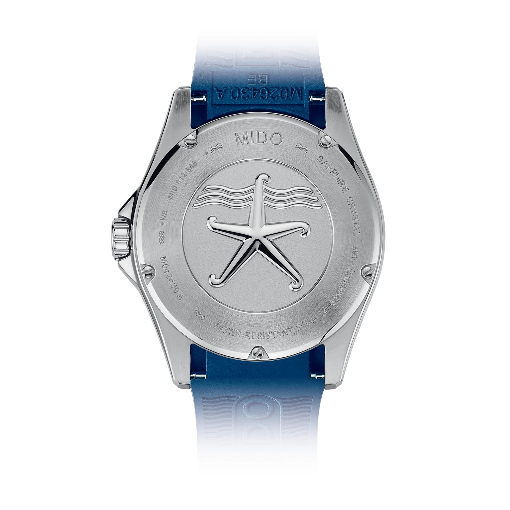 Часы MIDO Ocean Star 200C (артикул M042.430.17.041.00) сочетают элегантный дизайн и высокую функциональность, подходя как для повседневного ношения, так и для водных приключений. Корпус диаметром 42,5 мм выполнен из нержавеющей стали с водозащитой до 20 бар (200 метров). Однонаправленная вращающаяся безель, завинчивающиеся заводная головка и задняя крышка подчёркивают практичность. Синий циферблат с волнообразным узором оснащён накладными часовыми метками и стрелками с покрытием Super-LumiNova®Люминесцентное покрытиеПозволяет считывать показания времени в темноте. Производители наносят на стрелки, часовые индексы, безель или поверхность циферблата светонакопительный состав, дающий холодное свечение.. Окошки даты и дня недели расположены в положении «3 часа». Циферблат защищён сапфировым стекломСапфировое стеклоПрочный и надёжный материал из кристалла сапфира синтетического происхождения, характеризующийся особой твёрдостью и устойчивостью к царапинам и повреждениям. с двусторонним антибликовым покрытием.