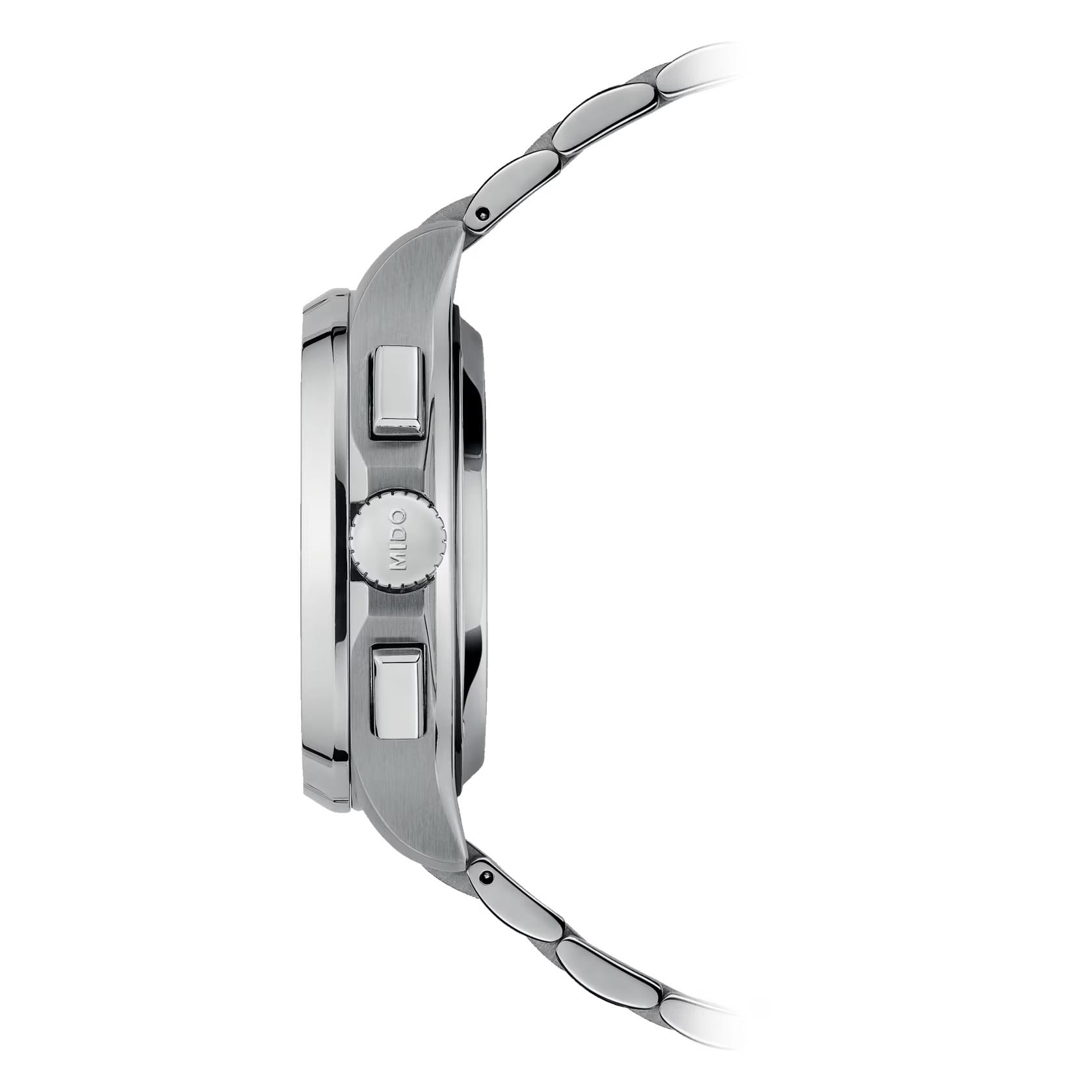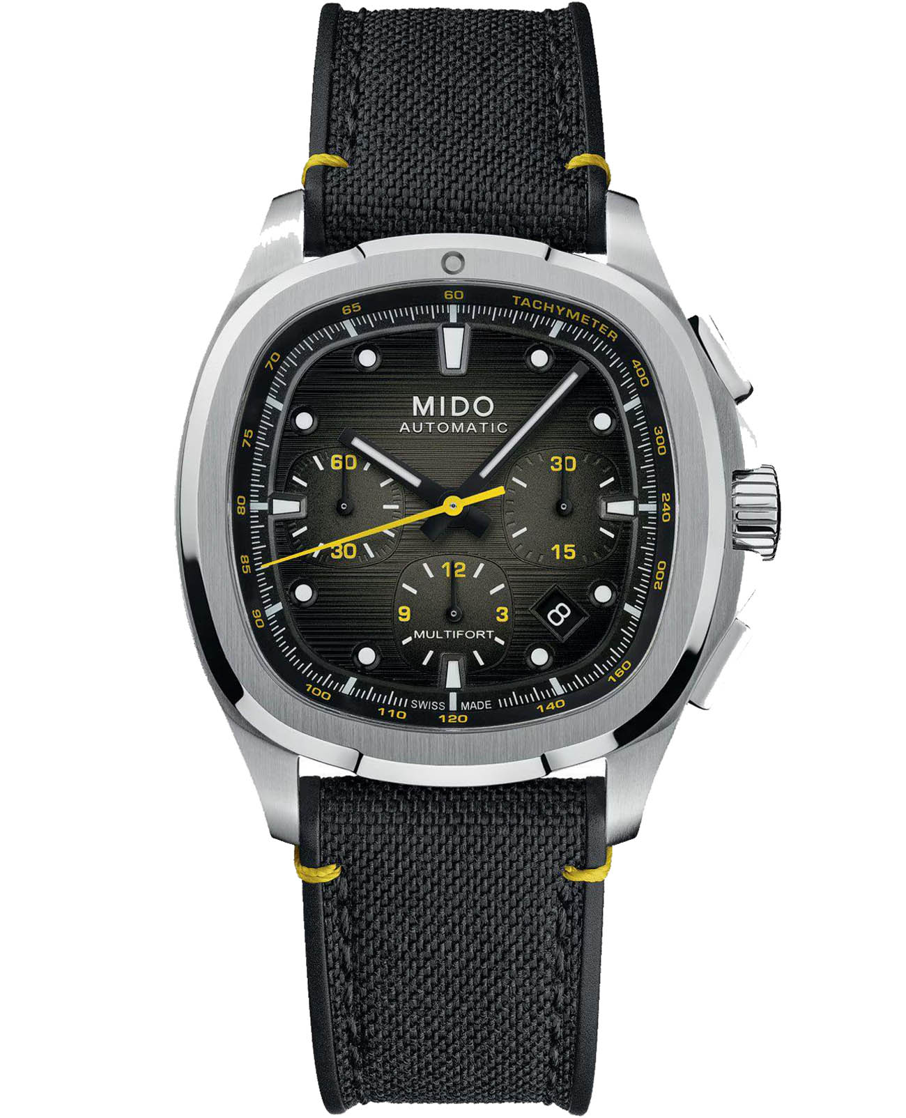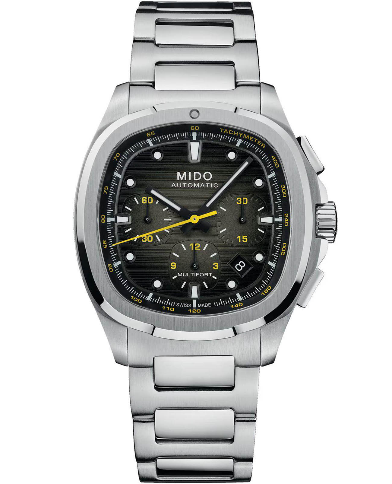 Мужские механические швейцарские часы Mido Multifort TV Chronograph M049.527.11.081.00, механический механизм с высокой точностью. Сапфировое стеклоСапфировое стеклоПрочный и надёжный материал из кристалла сапфира синтетического происхождения, характеризующийся особой твёрдостью и устойчивостью к царапинам и повреждениям. устойчивое к появлению царапин, обладающее высокой прозрачностью. Корпус часов изготовлен из нержавеющей стали.  В механизм внедрена пружина баланса Nivachron™Nivachron™Специально разработанный инновационный сплав Nivachron™ повышает устойчивость часов к воздействию магнитных полей.. Стрелки с люминесцентным покрытиемЛюминесцентное покрытиеПозволяет считывать показания времени в темноте. Производители наносят на стрелки, часовые индексы, безель или поверхность циферблата светонакопительный состав, дающий холодное свечение.. Окошко даты в положении между 4 и 6 часами. Класс водозащиты: 100 метров, позволит плавать, нырять и заниматься другими водными видами спорта. Стальной браслет на раскладной застёжкеРаскладная застёжкаТакой тип застёжки используется только на браслетах из металла. Она никогда не раскрывается полностью, происходит разделение на 2 и более частей. Раскладывающая застёжка снизит вероятность потери часов к минимуму.. Часы с функциями хронографаХронографФункция позволяет измерять отрезки времени с особой точностью: часы, минуты, секунды. Верным признаком хронографа является наличие на циферблате 3 дополнительных окошек-счётчиков. и тахиметраТахиметрРазмеченная шкала, располагается на ободке или безеле часов. Тахиметр позволяет рассчитать скорость на определённом участке пути, расстояние измеряется в километрах или милях..Поставляются с дополнительным ремешком, что обеспечивает еще большую универсальность и комфорт.