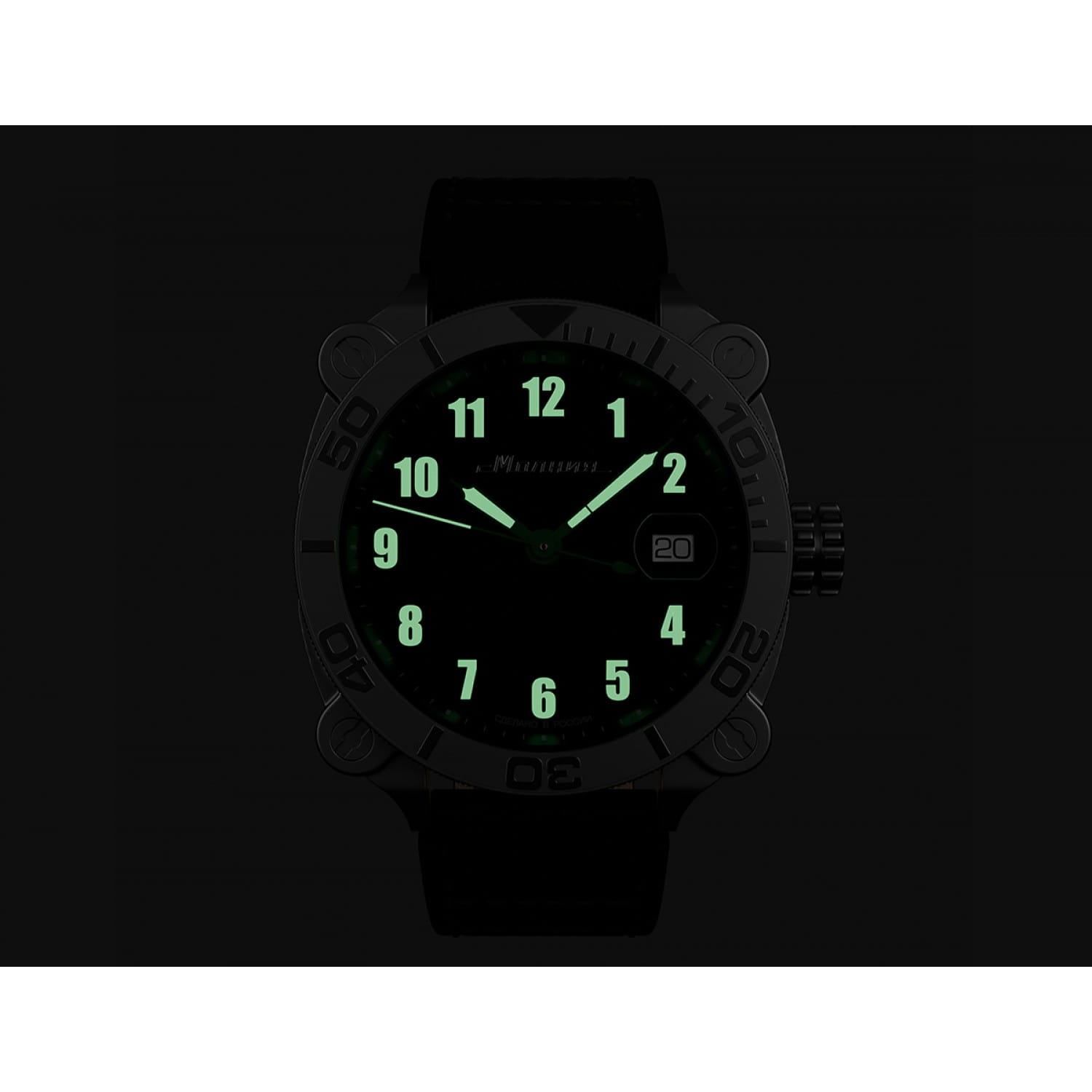 Мужские механические часы с автоподзаводом от бренда «МОЛНИЯ» — это стильный аксессуар, вдохновлённый дизайном приборной панели легендарного танка Т-72. Корпус диаметром 42 мм и толщиной 12 мм выполнен из нержавеющей стали 316L с матовой полировкой. БезельБезельВнешний ободок, закрепляющий стекло. В спортивных часах так называется поворотное кольцо с делениями на циферблате, выполняет роль таймера – замеряет отрезки времени на шкале. Неподвижный безель – элемент декора. Однонаправленно вращающийся безель на дайверских часах позволяет фиксировать моменты погружения и выныривания на поверхность. однонаправленный, вращающийся. Циферблат чёрного цвета оформлен арабскими цифрами и логотипом бренда. Окошко даты расположено в положении 3 часов и оснащено увеличительным стеклом. Стрелки и метки с люминесцентным покрытиемЛюминесцентное покрытиеПозволяет считывать показания времени в темноте. Производители наносят на стрелки, часовые индексы, безель или поверхность циферблата светонакопительный состав, дающий холодное свечение. Super-LumiNova. Циферблат защищён сапфировым стекломСапфировое стеклоПрочный и надёжный материал из кристалла сапфира синтетического происхождения, характеризующийся особой твёрдостью и устойчивостью к царапинам и повреждениям. с антибликовым покрытиемАнтибликовое покрытиеСлой оксида металла в 0,13-0,3 микрон, благодаря которому стекло часов не бликует и не отражает свет. Антибликовое покрытие уменьшает отражение света в 10 раз, обеспечивая отличную читаемость показателей циферблата.. Механизм — Русский автоматический калибр Восток 2416 запас хода до 42 часов. Заводная головка стилизована под гусеничную ленту, задняя крышка с гравировкой танка. Часы оснащены кожаным ремешком чёрного цвета с классической пряжкой и системой быстрой замены. Водонепроницаемость 100 м позволяет использовать часы для плавания и повседневного ношения. Идеальный выбор для тех, кто ценит инженерное наследие и мощный дизайн.