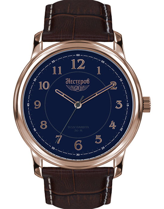 Российские мужские часы с минеральным стеклом Нестеров H0282C52-15B, кварцевый механизм с высокой точностью. Класс водозащиты: 50 метров, позволит защитить корпус от случайных брызг или капель дождя. Корпус часов изготовлен из стали, золотистого цвета.