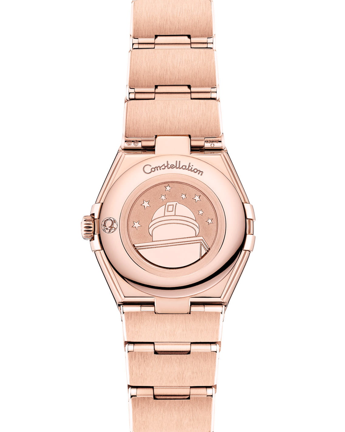 Легендарные часы OMEGA Constellation воплощают космическую гармонию в своем узнаваемом корпусе с плавными полукруглыми гранями и зеркальными скобами, напоминающими последние лучи заходящего солнца. Эта изысканная 25-миллиметровая модель из 18-каратного золота18-каратное золотоОбозначение по каратной системе пробирования, оно показывает, сколько драгоценного металла содержится в изделии. 18 карат - в составе 75% чистого золота, соответствует 750 пробе.