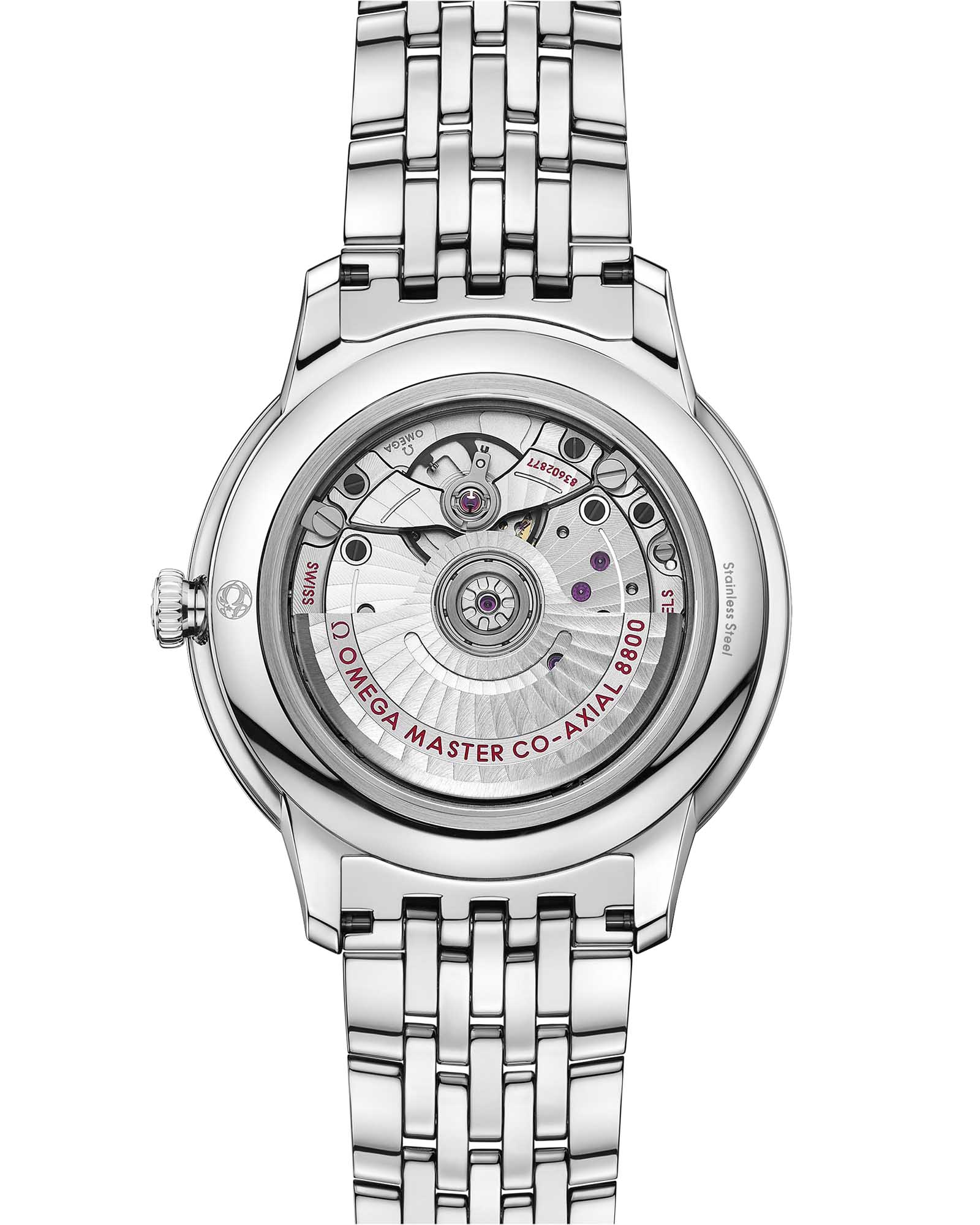 Коллекция OMEGA De Ville Prestige, не теряющая актуальности с 1994 года, предстает в третьем поколении. Часы остаются символом классического дизайна и изысканной элегантности. Модели, привлекающие внимание широкой гаммой узоров, отделок и цветов, идеально подойдут для людей с разным образом жизни и характером. Часы в корпусе диаметром 40 мм из нержавеющей стали имеют выпуклый циферблат с PVD-покрытиемPVDУльтратонкое покрытие наносится в технике вакуумного напыления, сочетает в себе нитрид титана особой прочности со слоем золота или оксида хрома. Несёт в себе декоративную или защитную функцию. оттенка зеленой сосны и радиальным сатинированием. На циферблате расположены стрелки с родиевым покрытием, а также чередующиеся римские цифры и индексы в форме кабошона. Изделие с лаконичным дизайном дополнено окошком даты в положении «6 часов» и минутной шкалой в стиле «железная дорога» на внешнем секторе. Часы с сертификатом Master Chronometer представлены с браслетом из нержавеющей стали. Модель оснащена калибром OMEGA Master Co-Axial 8800, который виден сквозь устойчивое к царапинам сапфировое стеклоСапфировое стеклоПрочный и надёжный материал из кристалла сапфира синтетического происхождения, характеризующийся особой твёрдостью и устойчивостью к царапинам и повреждениям. задней крышки корпуса.