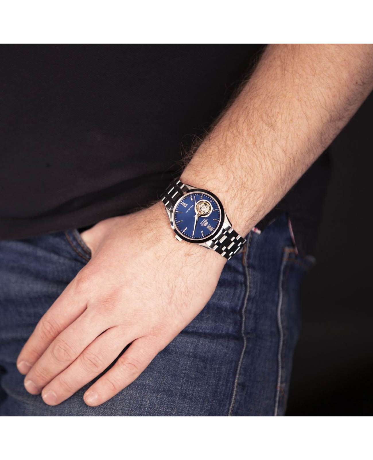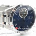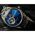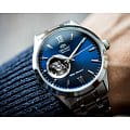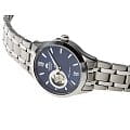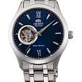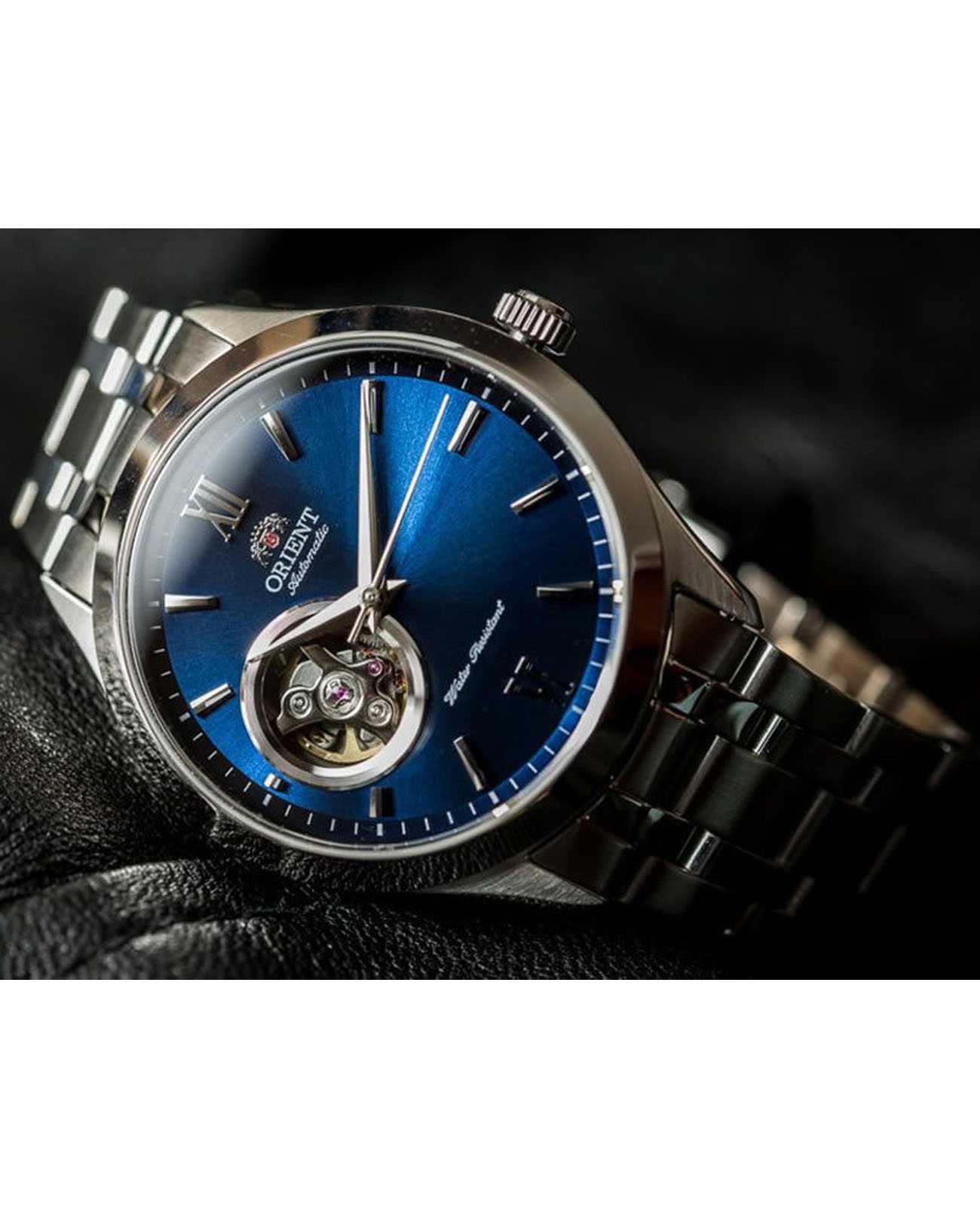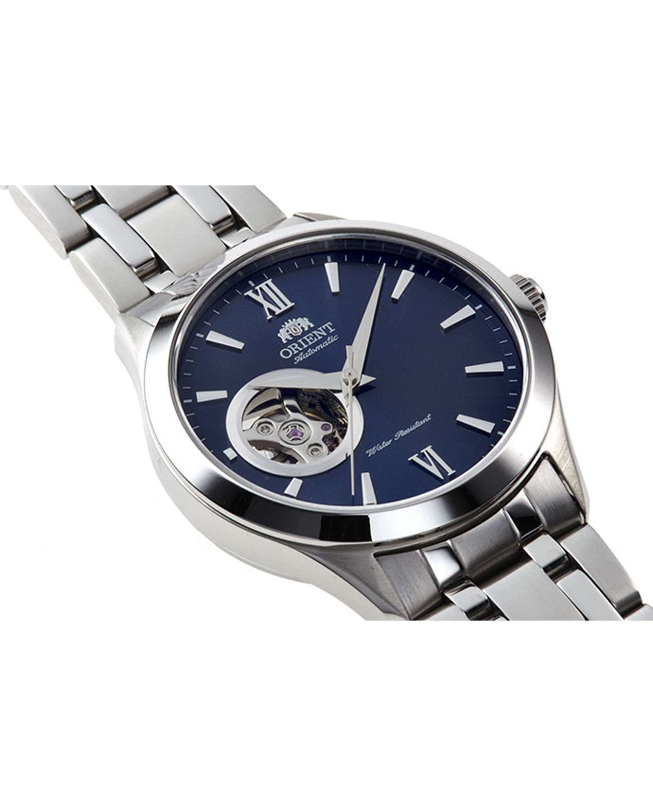 Orient AG03001D — стильные и элегантные часы, объединяющие классические элементы с современным дизайном. Корпус диаметром 38,5 мм выполнен из нержавеющей стали с полированной отделкой, придающей модели утончённый и элегантный вид. Глубокий синий циферблат дополнен серебристыми стрелками и часовыми метками, а римские цифры на отметках «6» и «12 часов» добавляют классический акцент. Окошко «Open Heart» на отметке 9 часов позволяет наблюдать за работой механизма. Надёжную защиту циферблата обеспечивает сапфировое стеклоСапфировое стеклоПрочный и надёжный материал из кристалла сапфира синтетического происхождения, характеризующийся особой твёрдостью и устойчивостью к царапинам и повреждениям., устойчивое к царапинам. Внутри установлен автоматический механизм Orient калибра F6T22 с возможностью ручного подзавода и стоп-секундой, обеспечивающий точность и запас хода до 40 часов. Часы комплектуются браслетом из нержавеющей стали с полированной и матовой отделкой, а раскладная застёжкаРаскладная застёжкаТакой тип застёжки используется только на браслетах из металла. Она никогда не раскрывается полностью, происходит разделение на 2 и более частей. Раскладывающая застёжка снизит вероятность потери часов к минимуму. с предохранителем гарантирует надёжную фиксацию на запястье. Водонепроницаемость 50 метров защищает часы от брызг и кратковременного контакта с водой, делая их отличным выбором для повседневного использования.