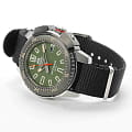 Окошко дня недели и даты расположено в положении «3 часа», что делает использование часов удобным и практичным. Стрелки и метки покрыты люминесцентным покрытиемЛюминесцентное покрытиеПозволяет считывать показания времени в темноте. Производители наносят на стрелки, часовые индексы, безель или поверхность циферблата светонакопительный состав, дающий холодное свечение., благодаря чему они светятся в темноте, облегчая считывание времени даже ночью. Уровень водонепроницаемости составляет 200 метров, что позволяет использовать часы для плавания, ныряния и занятий различными водными видами спорта.