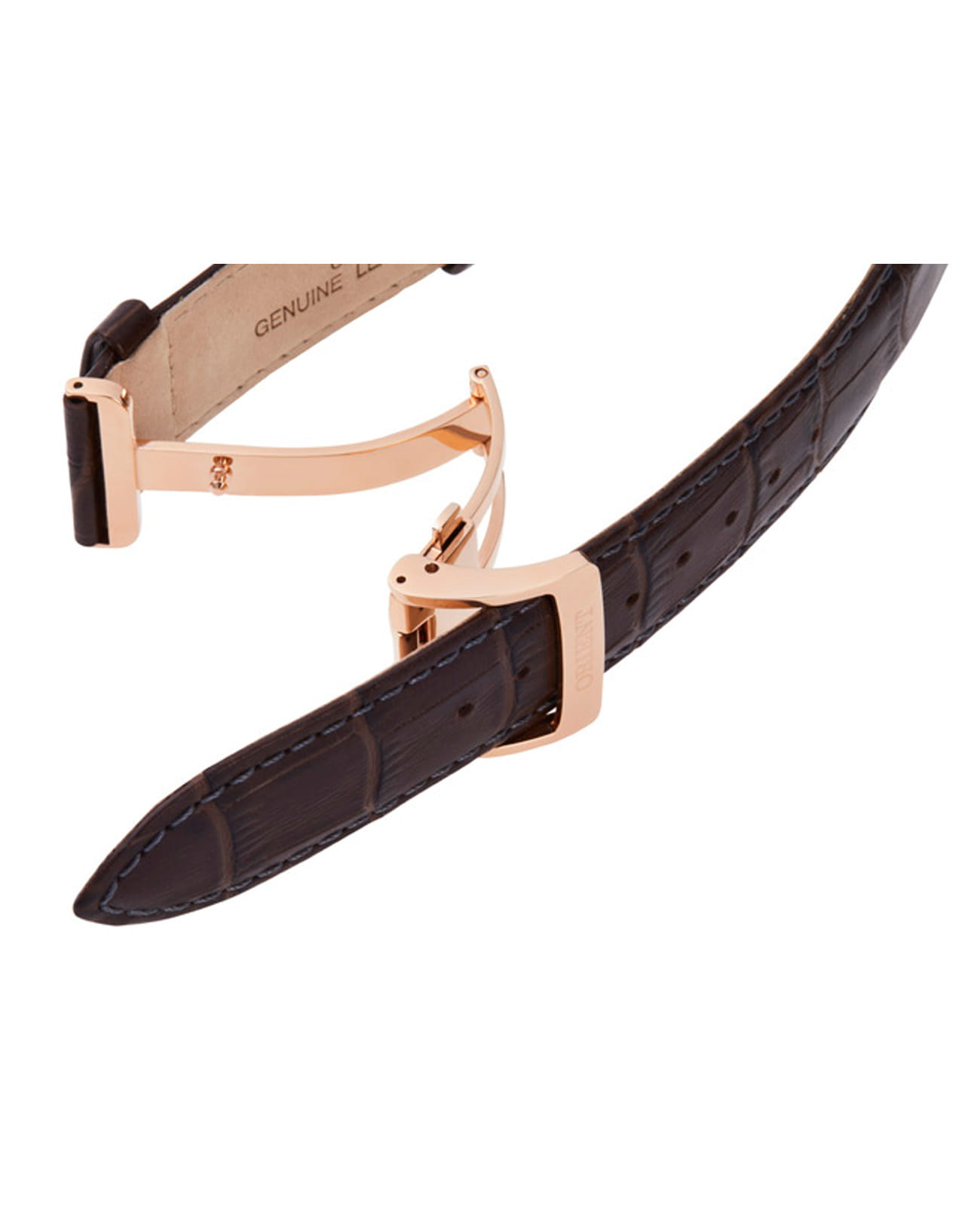 Кожаный ремешок с раскладной застёжкойРаскладная застёжкаТакой тип застёжки используется только на браслетах из металла. Она никогда не раскрывается полностью, происходит разделение на 2 и более частей. Раскладывающая застёжка снизит вероятность потери часов к минимуму. обеспечивает удобное и надежное крепление часов на запястье, подчеркивая общую концепцию комфорта и стиля.