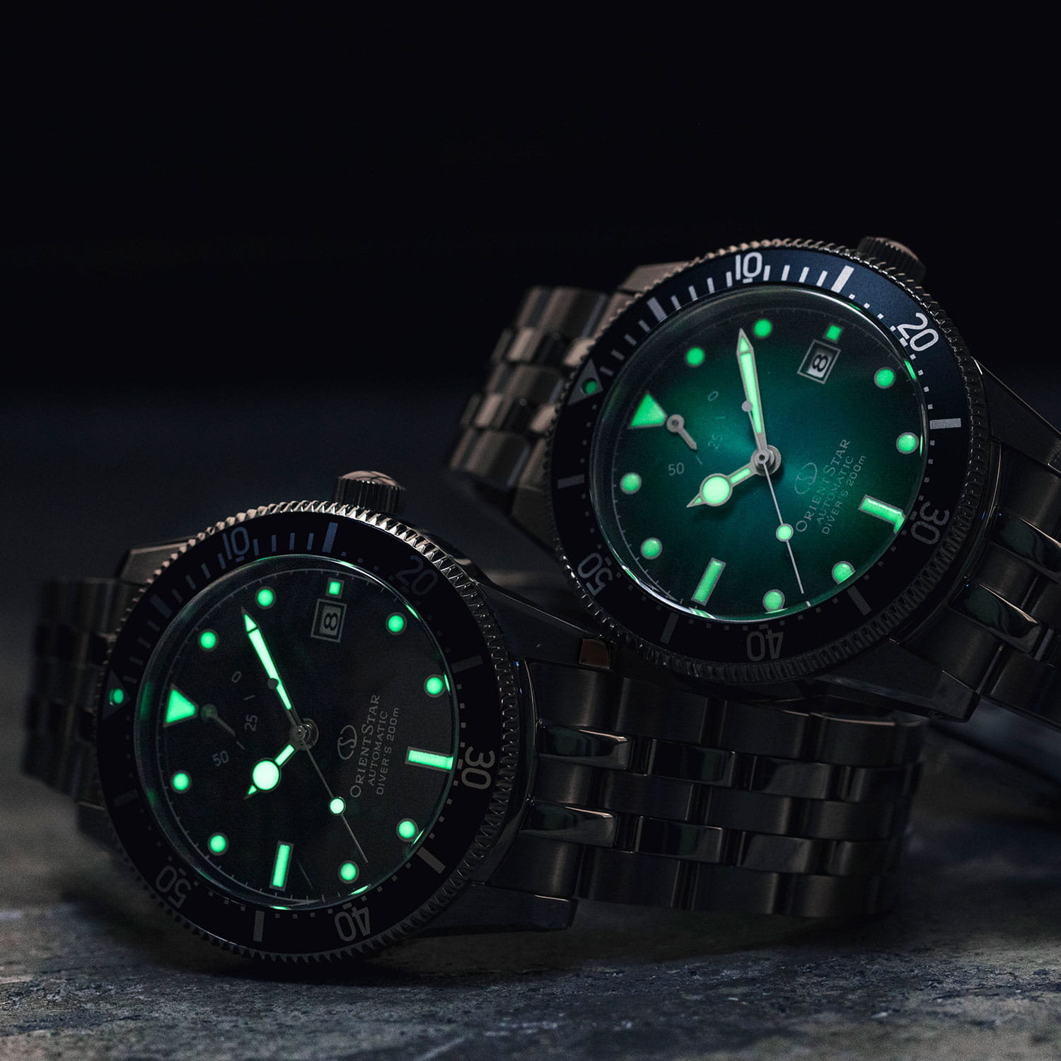 Модель Orient Star RE-AU0602E из серии Sports Diver — это профессиональные механические часы для подводных приключений и повседневного стиля с акцентом на надёжность и японскую эстетику. Корпус диаметром 41 мм выполнен из нержавеющей стали SUS316L, что гарантирует устойчивость к коррозии и высокую прочность. Односторонний безель из алюминия с насечками упрощает управление под водой, а заводная головка и задняя крышка завинчиваются для дополнительной защиты. Градиентный зелёный циферблат вдохновлён природными оттенками пещеры Рюсэндо. Часовые метки и стрелки покрыты люминесцентным покрытиемЛюминесцентное покрытиеПозволяет считывать показания времени в темноте. Производители наносят на стрелки, часовые индексы, безель или поверхность циферблата светонакопительный состав, дающий холодное свечение., обеспечивая отличную читаемость даже в полной темноте. На циферблате размещён индикатор запаса хода и окно даты. Циферблат защищён двойным выпуклым сапфировым стекломСапфировое стеклоПрочный и надёжный материал из кристалла сапфира синтетического происхождения, характеризующийся особой твёрдостью и устойчивостью к царапинам и повреждениям. с антибликовым покрытиемАнтибликовое покрытиеСлой оксида металла в 0,13-0,3 микрон, благодаря которому стекло часов не бликует и не отражает свет. Антибликовое покрытие уменьшает отражение света в 10 раз, обеспечивая отличную читаемость показателей циферблата.. Модель оснащена автоматическим калибром F6N47 с функцией ручного подзавода, остановкой секундной стрелки и запасом хода до 50 часов. Водонепроницаемость составляет 200 метров и соответствует стандарту ISO 6425, что делает часы полноценным дайвером. Браслет выполнен из стали с раскладной застёжкойРаскладная застёжкаТакой тип застёжки используется только на браслетах из металла. Она никогда не раскрывается полностью, происходит разделение на 2 и более частей. Раскладывающая застёжка снизит вероятность потери часов к минимуму. и системой удлинения для дайверского костюма. В комплекте предусмотрен дополнительный силиконовый ремешок. Orient Star RE-AU0602E — это надёжные, технически выверенные и эстетически продуманные часы, которые одинаково уверенно смотрятся под водой и в городских условиях.