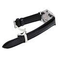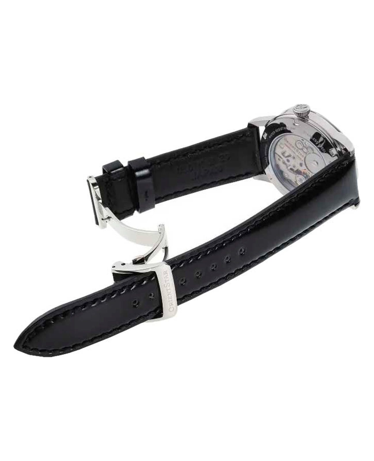 Класс водозащиты этих часов составляет 50 метров, что защитит механизм от случайных брызг или капель дождя. Кожаный ремешок с раскладной застежкойРаскладная застёжкаТакой тип застёжки используется только на браслетах из металла. Она никогда не раскрывается полностью, происходит разделение на 2 и более частей. Раскладывающая застёжка снизит вероятность потери часов к минимуму. обеспечивает удобное и надёжное крепление часов на запястье.