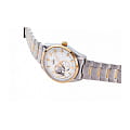 Часы Orient RN-AR0006S представляют собой стильную модель из коллекции Contemporary, сочетающую в себе классический дизайн и современные технологии. Это мужские механические часы с автоподзаводом, оснащённые калибром F6S22, который обеспечивает точность хода в пределах +25/-15 секунд в сутки и запас хода до 40 часов. Часы также поддерживают функцию ручного подзавода и остановки секундной стрелки (hacking stop), что позволяет точно синхронизировать время. Корпус часов выполнен из нержавеющей стали и имеет диаметр 40,8 мм при толщине 10,9 мм. Водонепроницаемость модели составляет 50 метров, что защищает часы от случайных брызг или капель дождя, но не предназначено для плавания или дайвинга. Часы оснащены сапфировым стекломСапфировое стеклоПрочный и надёжный материал из кристалла сапфира синтетического происхождения, характеризующийся особой твёрдостью и устойчивостью к царапинам и повреждениям., устойчивым к царапинам, и винтовой задней крышкой с прозрачным окном, позволяющим наблюдать за работой механизма. Циферблат выполнен в белом цвете с полускелетонным дизайном, который открывает вид на механизм в области 9 часов. На циферблате расположены светящиеся метки и стрелки с люминесцентным покрытиемЛюминесцентное покрытиеПозволяет считывать показания времени в темноте. Производители наносят на стрелки, часовые индексы, безель или поверхность циферблата светонакопительный состав, дающий холодное свечение., обеспечивающие хорошую видимость в темноте. Также предусмотрено окно малой секундной стрелки на позиции 6 часов, что добавляет часам уникальный и стильный вид. Браслет часов изготовлен из нержавеющей стали с частичным PVD-покрытиемPVDУльтратонкое покрытие наносится в технике вакуумного напыления, сочетает в себе нитрид титана особой прочности со слоем золота или оксида хрома. Несёт в себе декоративную или защитную функцию., что придаёт ему дополнительную износостойкость и элегантный внешний вид. Застёжка выполнена вна раскладной застёжкеРаскладная застёжкаТакой тип застёжки используется только на браслетах из металла. Она никогда не раскрывается полностью, происходит разделение на 2 и более частей. Раскладывающая застёжка снизит вероятность потери часов к минимуму., что обеспечивает надёжную фиксацию на запястье. Часы оснащены фиксированным безелемБезельВнешний ободок, закрепляющий стекло. В спортивных часах так называется поворотное кольцо с делениями на циферблате, выполняет роль таймера – замеряет отрезки времени на шкале. Неподвижный безель – элемент декора. Однонаправленно вращающийся безель на дайверских часах позволяет фиксировать моменты погружения и выныривания на поверхность. с PVD-покрытиемPVDУльтратонкое покрытие наносится в технике вакуумного напыления, сочетает в себе нитрид титана особой прочности со слоем золота или оксида хрома. Несёт в себе декоративную или защитную функцию., который подчёркивает их ретро-стиль и добавляет модели современный акцент .