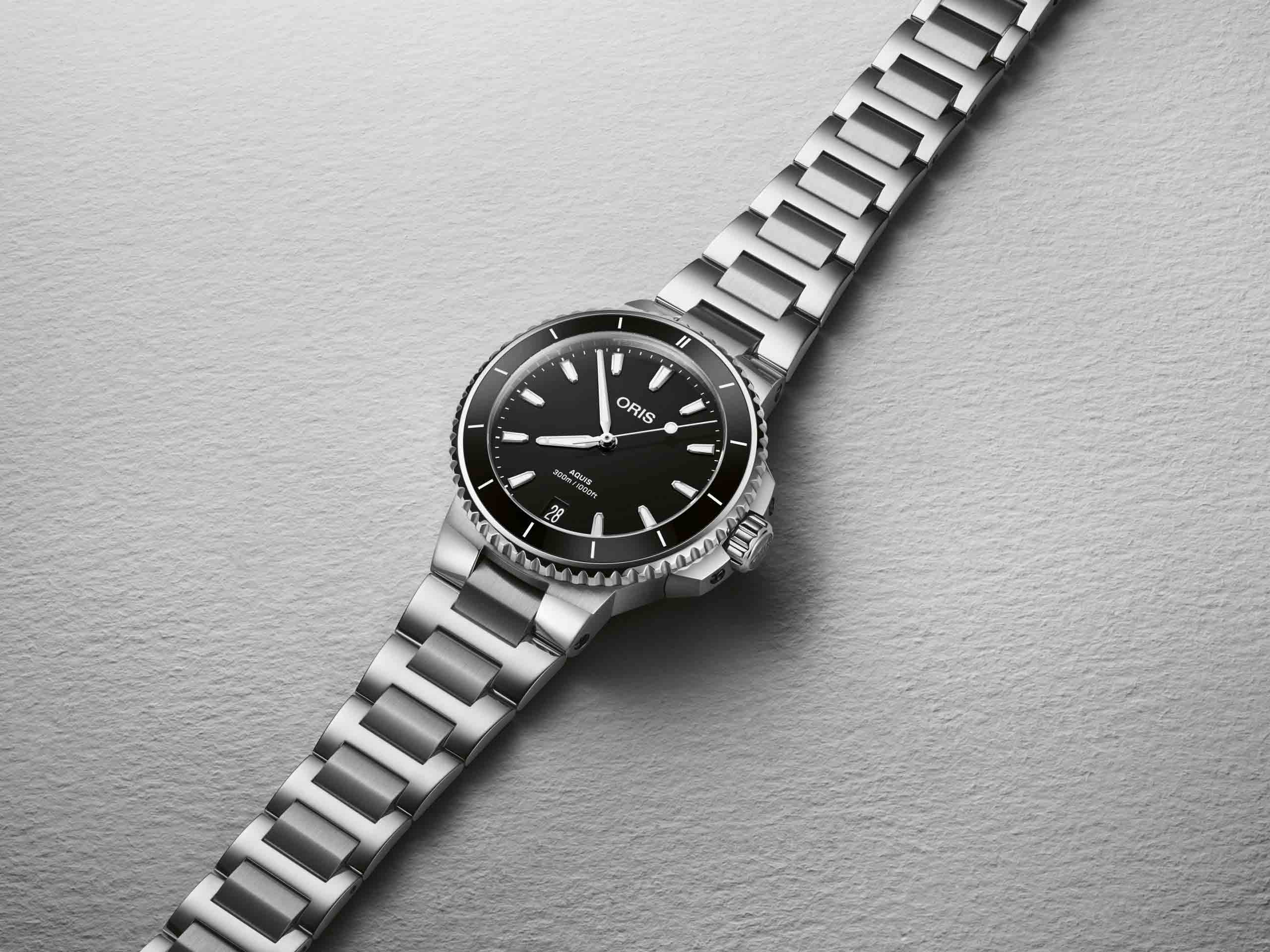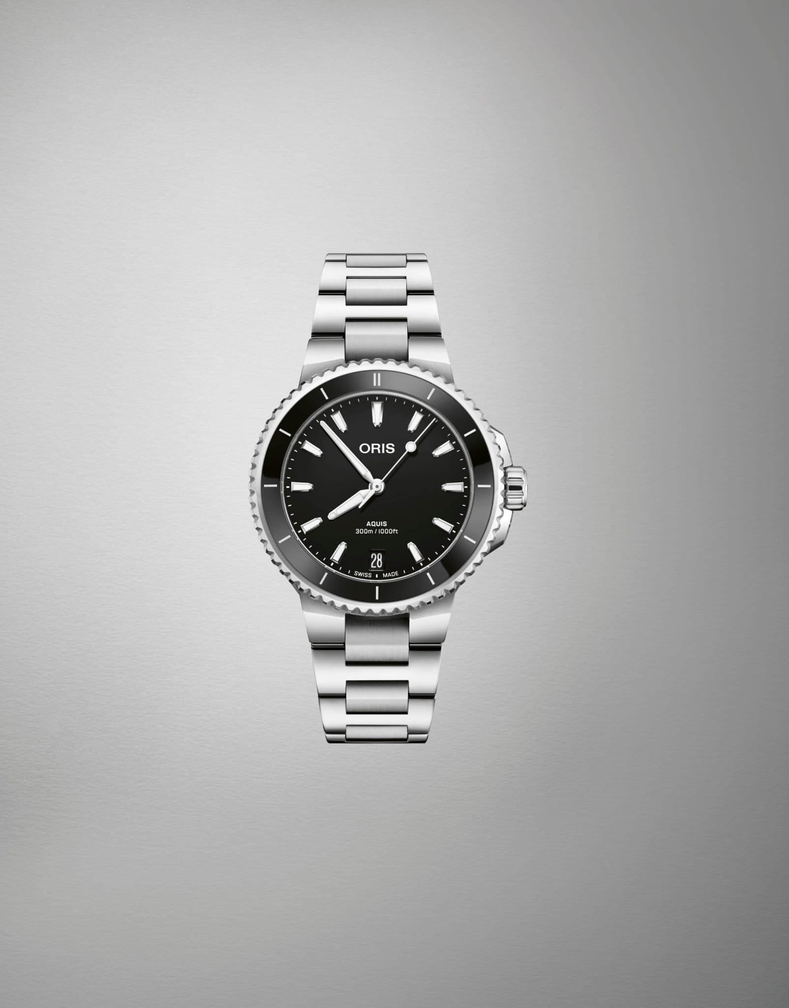 Чтобы сделать модель Aquis Date 36.50 мм более элегантной, Oris уменьшил ее профиль, усовершенствовали дизайн безеля и оснастили ее новым браслетом с H-образными звеньями. В результате получились повседневные часы с ювелирным образом и смелым характером.