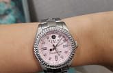 Камушки, которые кристаллы Swarovski. Полностью стальные. Присутствует водозащита от небольших капель.