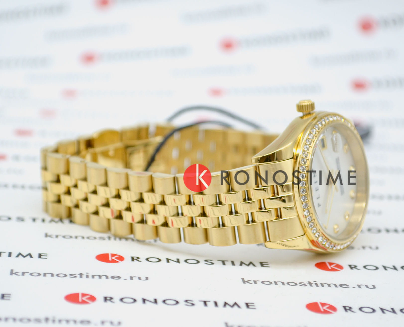 Яркие женские часы  Philipp Plein Date Superlative PWYAA0323 с минеральным стекломМинеральное стеклоМинеральное стекло представляет собой искусственно выращенный минерал кварца. Такое стекло отличается особой устойчивостью к повреждениям и царапинам. Уступает по некоторым качествам сапфировому стеклу.. Особенные часы для особенных женщин! Ослепительный аксессуар, демонстрирующий роскошь и изысканность.Часы с круглым стальным корпусом с IP-покрытиемIP-покрытиеМетод ионного напыления. Демонстрирует повышенную устойчивость к истиранию, окислению и химическим веществам. Под воздействием высокого давления и температуры около 1500°C молекулы металла надёжно соединяются с частицами корпуса часов.. Перламутровый циферблат с метками в виде точек, украшенных кристаллами. Люминесцентное покрытиеЛюминесцентное покрытиеПозволяет считывать показания времени в темноте. Производители наносят на стрелки, часовые индексы, безель или поверхность циферблата светонакопительный состав, дающий холодное свечение. стрелок. Окошко даты с увеличительным стеклом находится в положении 3 часа. Рифленая заводная головка. Стальной браслет на застёжке бабочка с кнопкамиЗастёжка "бабочка"Такой вид застёжки дополняется предохранителями, помогающими избежать случайного раскрытия браслета. Обладают изящным исполнением.