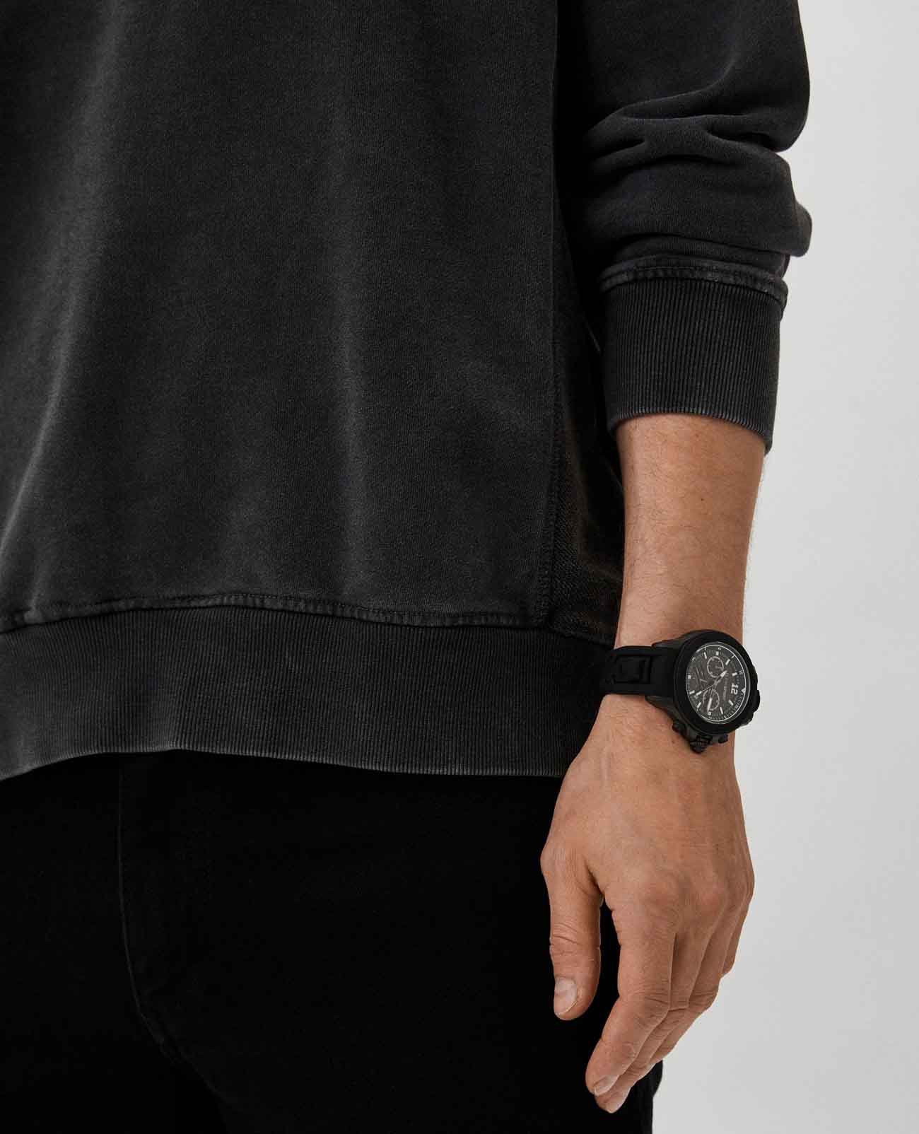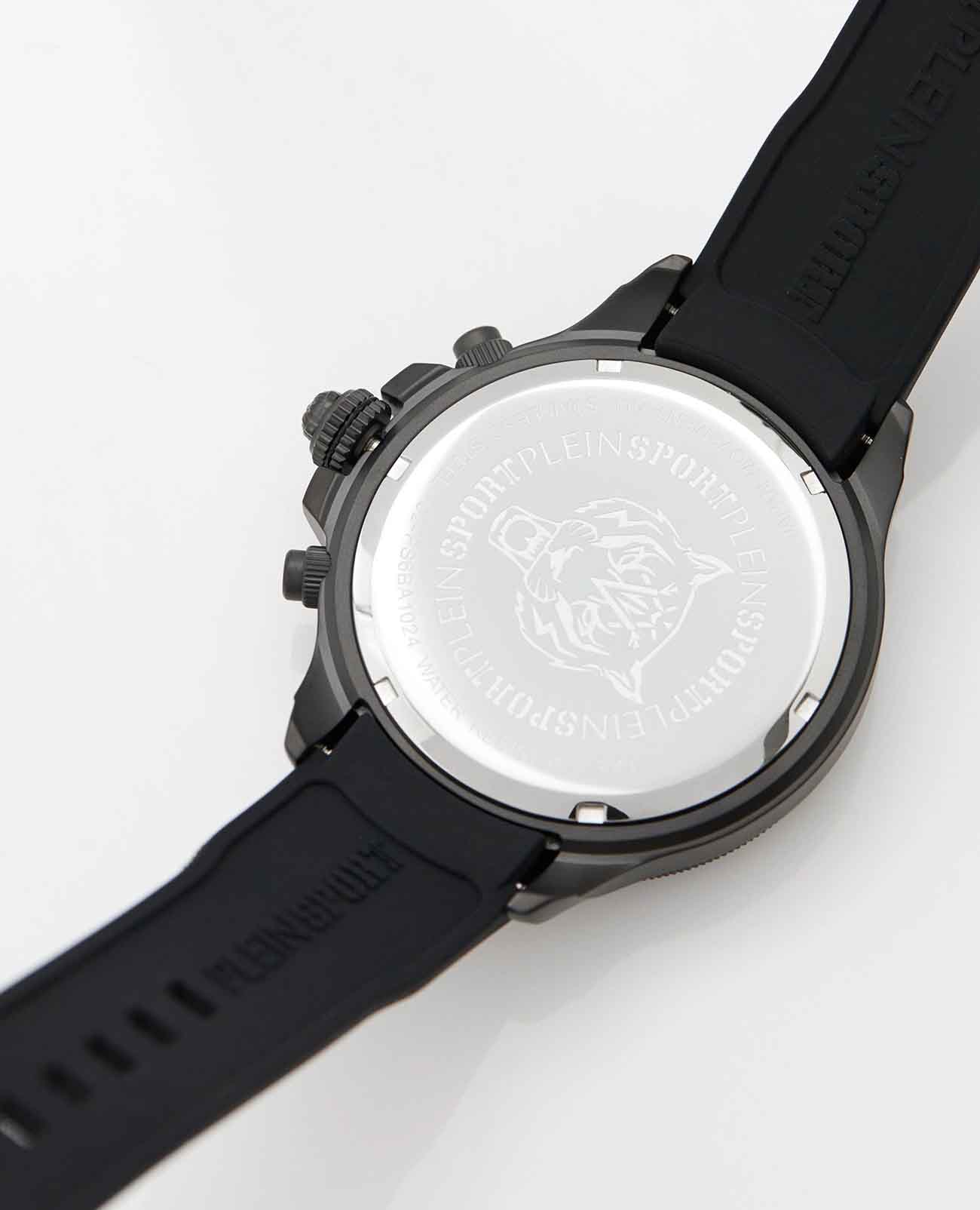 Дерзкий аксессуар со смелым, бунтарским дизайном будет с вами в любом приключении. Мужские кварцевые Plein Sport PS6BA1024 часы-хронографХронографФункция позволяет измерять отрезки времени с особой точностью: часы, минуты, секунды. Верным признаком хронографа является наличие на циферблате 3 дополнительных окошек-счётчиков.. Корпус часов изотовлен из стали с IP-покрытиемIP-покрытиеМетод ионного напыления. Демонстрирует повышенную устойчивость к истиранию, окислению и химическим веществам. Под воздействием высокого давления и температуры около 1500°C молекулы металла надёжно соединяются с частицами корпуса часов.. Циферблат дополнен паттерном ''след когтей''. Рифленая заводная головка с защитой. Класс водозащиты: 50 метров, позволит защитить корпус от случайных брызг или капель дождя. Силиконовый ремешок на стандартной застежке.