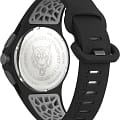 Дерзкий аксессуар со смелым, бунтарским дизайном будет с вами в любом приключении. Мужские часы-хронографХронографФункция позволяет измерять отрезки времени с особой точностью: часы, минуты, секунды. Верным признаком хронографа является наличие на циферблате 3 дополнительных окошек-счётчиков. с секундомеромСекундомерСекундоме́р — прибор, способный измерять интервалы времени с точностью до долей секунды. с тахиметромТахиметрРазмеченная шкала, располагается на ободке или безеле часов. Тахиметр позволяет рассчитать скорость на определённом участке пути, расстояние измеряется в километрах или милях.. Корпус часов изотовлен из нержавеющей стали с IP-покрытиемIP-покрытиеМетод ионного напыления. Демонстрирует повышенную устойчивость к истиранию, окислению и химическим веществам. Под воздействием высокого давления и температуры около 1500°C молекулы металла надёжно соединяются с частицами корпуса часов.. Циферблат с камуфляжным рисунком дополнен паттерном ''след когтей''. Метки в виде штрихов, фирменное лого в виде тигра в положении 12 часов. Окошко даты находится между часовыми метками 4 и 5. Рифленая заводная головка с защитой. Класс водозащиты: 50 метров, позволит защитить корпус от случайных брызг или капель дождя. Силиконовый ремешок на стандартной застежке.