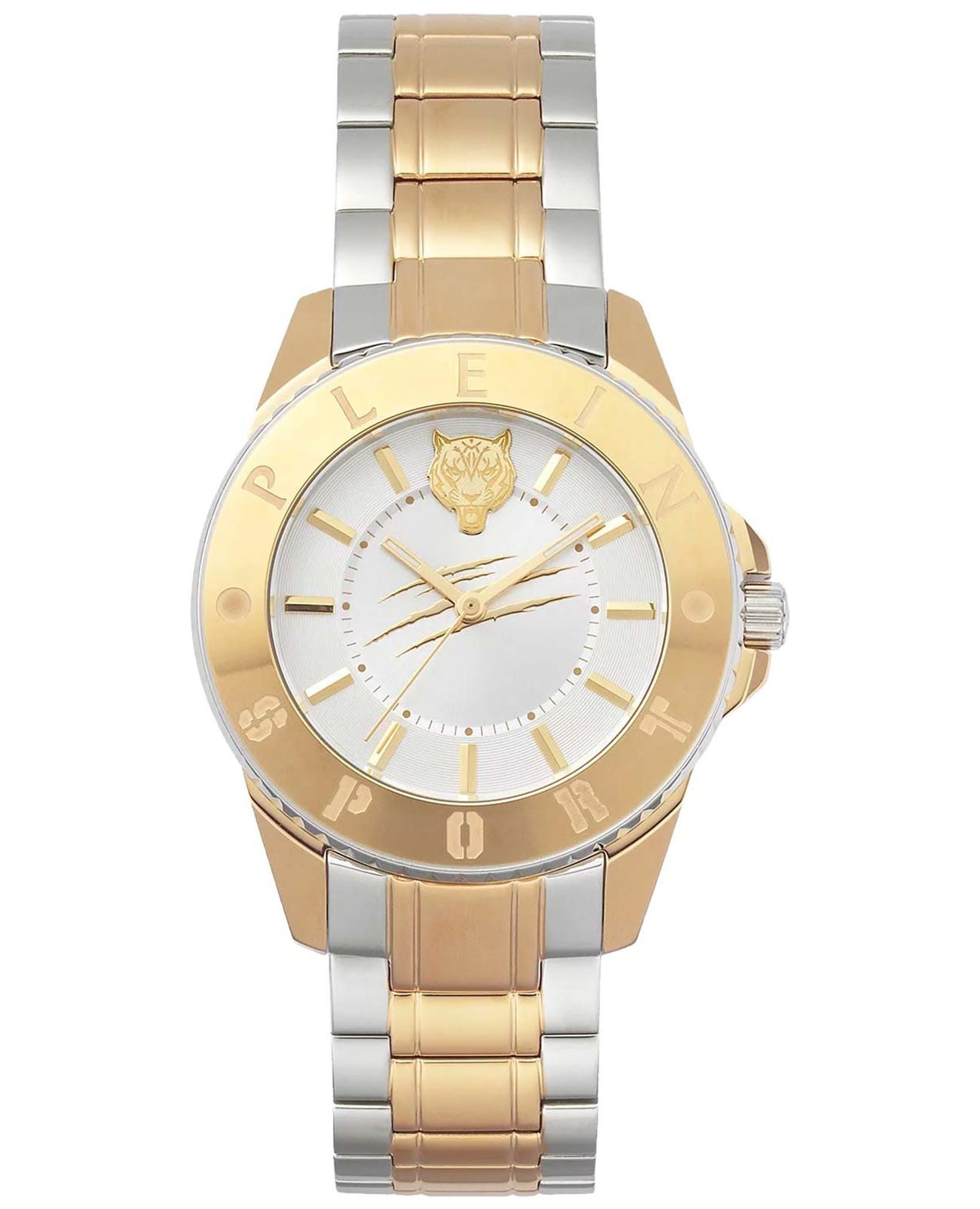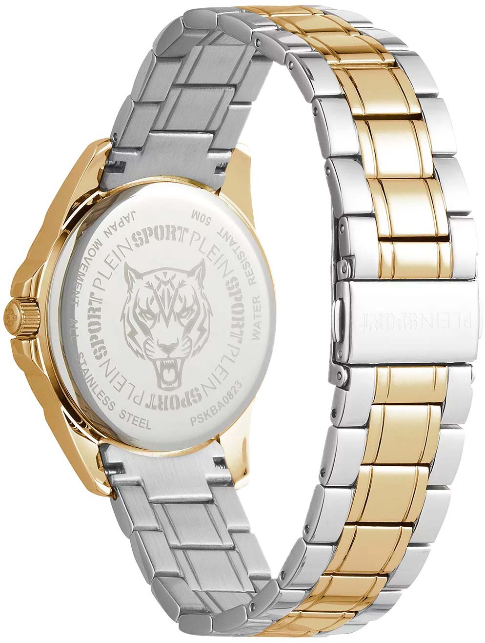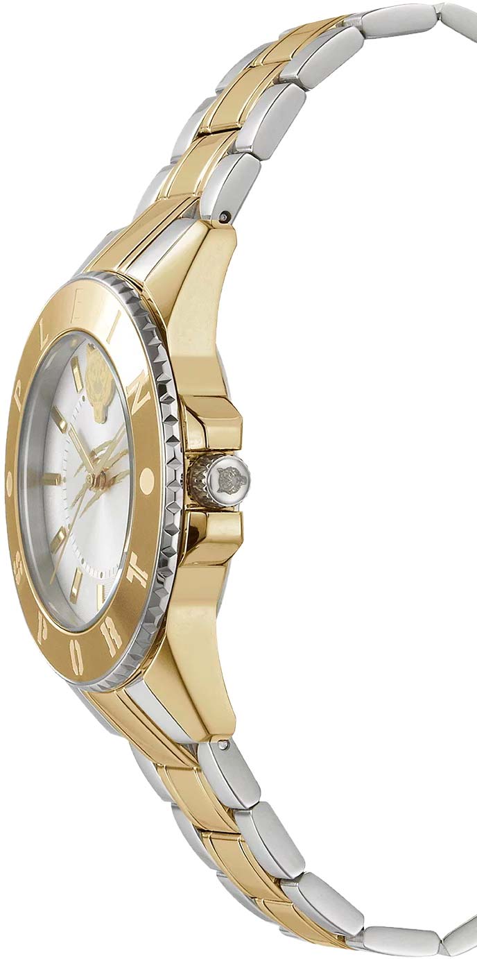 Немецкие женские кварцевые часы с минеральным стекломМинеральное стеклоМинеральное стекло представляет собой искусственно выращенный минерал кварца. Такое стекло отличается особой устойчивостью к повреждениям и царапинам. Уступает по некоторым качествам сапфировому стеклу. Plein Sport Glam PSKBA0823, кварцевый механизм с высокой точностью. Класс водозащиты: 50 метров, позволит защитить корпус от случайных брызг или капель дождя. Корпус часов изготовлен из стали с IP-покрытиемIP-покрытиеМетод ионного напыления. Демонстрирует повышенную устойчивость к истиранию, окислению и химическим веществам. Под воздействием высокого давления и температуры около 1500°C молекулы металла надёжно соединяются с частицами корпуса часов.. Стальной браслет на раскладной застёжкеРаскладная застёжкаТакой тип застёжки используется только на браслетах из металла. Она никогда не раскрывается полностью, происходит разделение на 2 и более частей. Раскладывающая застёжка снизит вероятность потери часов к минимуму. с IP-покрытиемIP-покрытиеМетод ионного напыления. Демонстрирует повышенную устойчивость к истиранию, окислению и химическим веществам. Под воздействием высокого давления и температуры около 1500°C молекулы металла надёжно соединяются с частицами корпуса часов.. Стрелки с люминесцентным покрытиемЛюминесцентное покрытиеПозволяет считывать показания времени в темноте. Производители наносят на стрелки, часовые индексы, безель или поверхность циферблата светонакопительный состав, дающий холодное свечение..