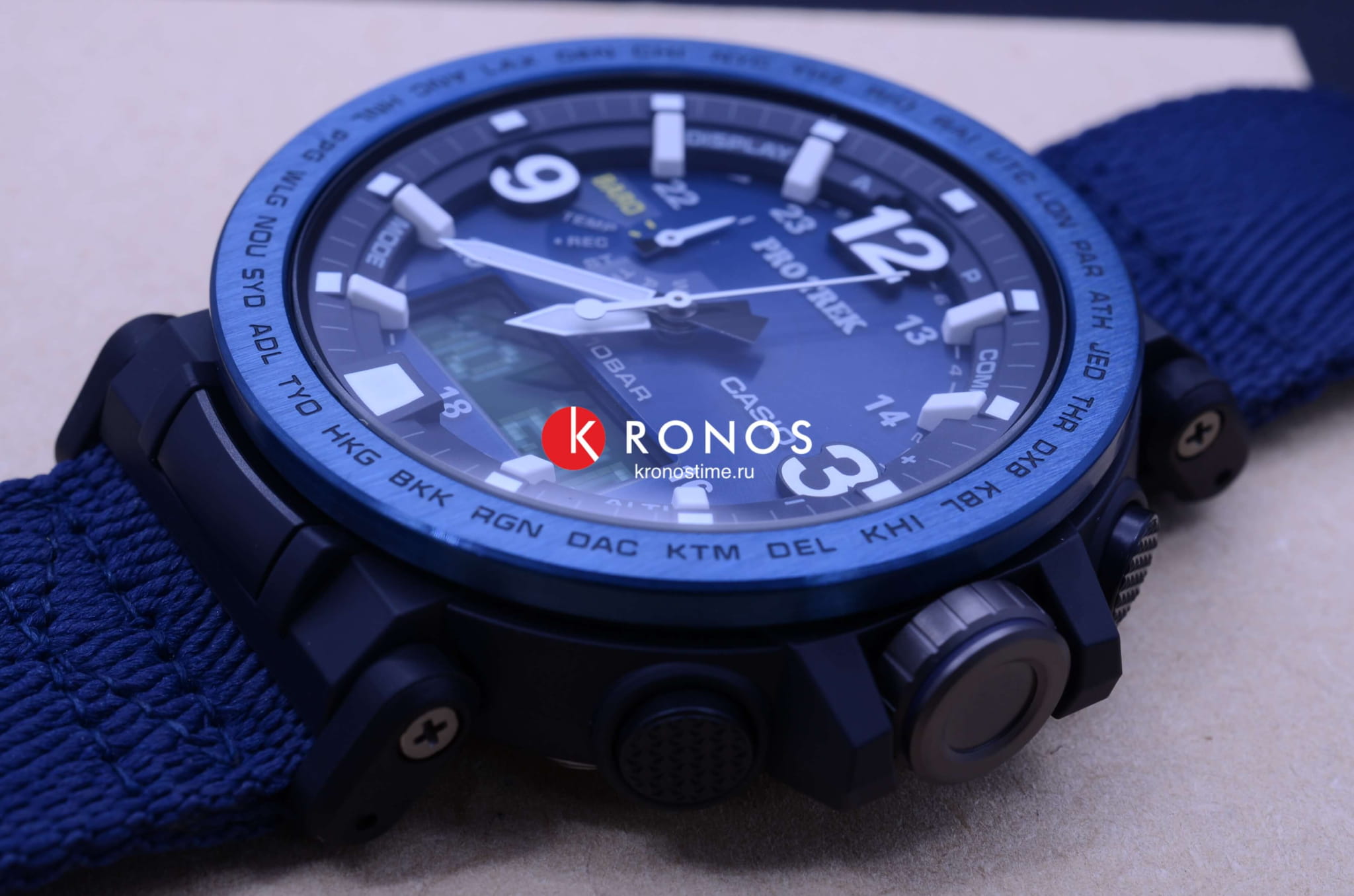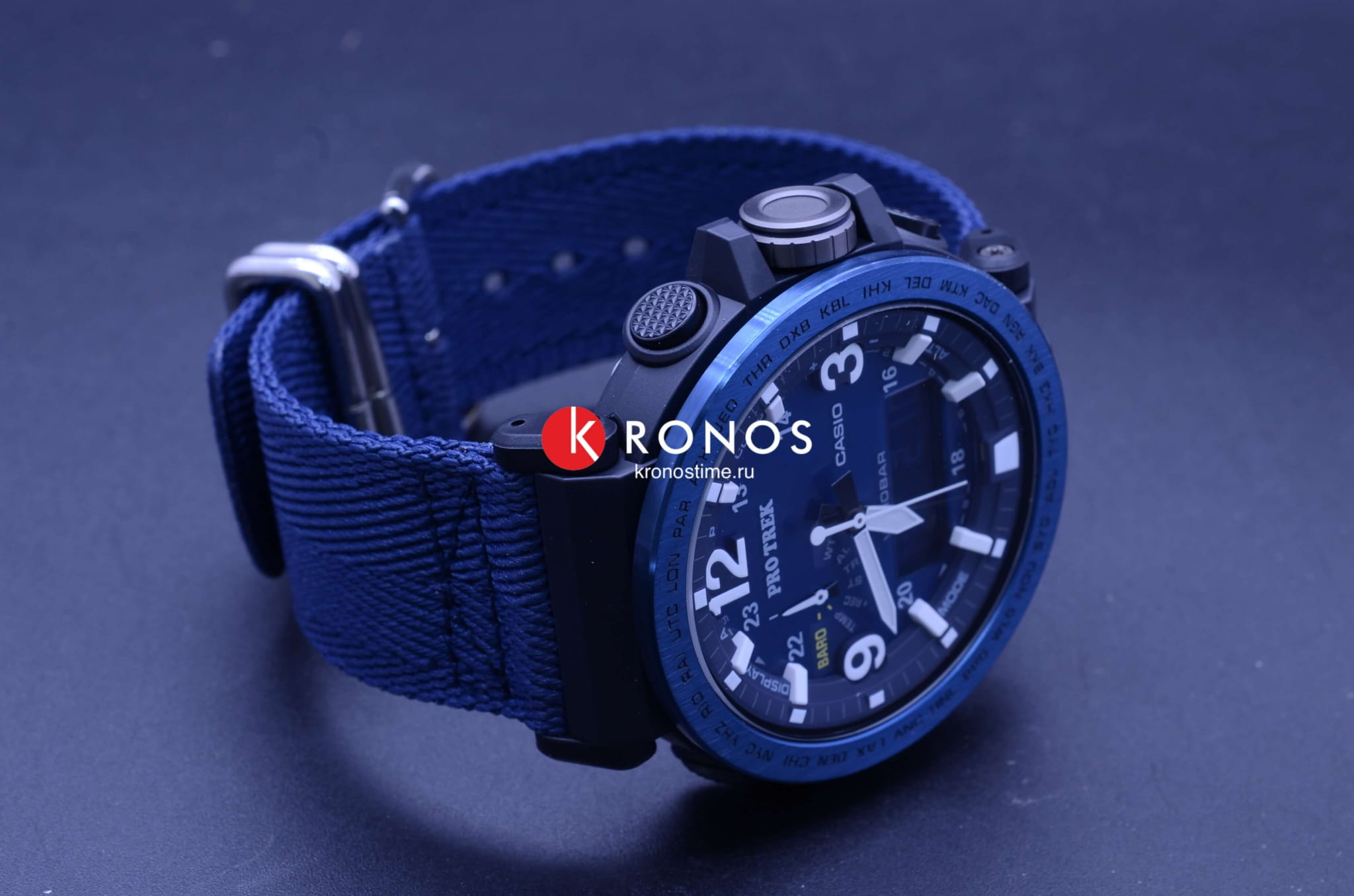 , секундомер, хронографХронографФункция позволяет измерять отрезки времени с особой точностью: часы, минуты, секунды. Верным признаком хронографа является наличие на циферблате 3 дополнительных окошек-счётчиков., календарь, мировое времяМировое время Полезное часовое усложнение, отображающее время в основных городах и известных областях по всему миру, оно связано с часовыми поясами, удобно для путешественников и бизнесменов. – 29 часовых поясов. Это часы на солнечной батарее , функция сохранения энергии позволяет модели работать без подзарядки на протяжении 25 месяцев. Текстильный ремешок Blue Navy. Ударопрочный корпусУдаропрочный корпусМеханизм заключён в корпус, выполненный из современных материалов, устойчивых к ударам, механическим повреждениям и падению с высоты: инновационный пластик, карбон, нержавеющая сталь, титан. из пластика и стали 316L с IP-покрытиемIP-покрытиеМетод ионного напыления. Демонстрирует повышенную устойчивость к истиранию, окислению и химическим веществам. Под воздействием высокого давления и температуры около 1500°C молекулы металла надёжно соединяются с частицами корпуса часов.. Минеральное стекло. Устойчивость к температурам ниже -10°C. Двойная светодиодная подсветкаСветодиодная подсветкаСветодиодная или LED-подсветка обеспечивает появление яркого холодного свечения за счёт LED-элементов - маленьких лампочек. Они потребляют минимальное количество энергии, чаще всего можно встретить 1 светодиод, в нижней части циферблата.. Класс водостойкости WR 100. Габариты: 51,6 x 51,5 x 13,4 мм.