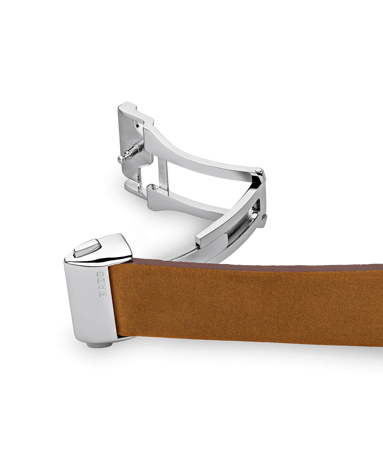 Премиальный аксессуар с винтажными элементами дизайна дополнен оригинальными стрелками, изображающими меч и стрелу. Надёжный корпус из нержавеющей стали 316L имеет синий безельБезельВнешний ободок, закрепляющий стекло. В спортивных часах так называется поворотное кольцо с делениями на циферблате, выполняет роль таймера – замеряет отрезки времени на шкале. Неподвижный безель – элемент декора. Однонаправленно вращающийся безель на дайверских часах позволяет фиксировать моменты погружения и выныривания на поверхность. из высокотехнологичной керамикиВысокотехнологичная керамикаИнновационный запатентованный Rado материал с гладкой или матовой поверхностью. Керамика за счёт кристаллической структуры обладает повышенной устойчивостью от возникновения царапин. Материал способен принимать температуру тела человека, обеспечивая невероятный комфорт при ношении., снижающий вес часов и препятствующий возникновению царапин. Швейцарский автоматический механизм ETA C07.611 с 80-часовым резервом хода. Стекло из сапфира с антибликовым покрытием. Ремешок из натуральной кожи. Люминесцентная подсветкаЛюминесцентное покрытиеПозволяет считывать показания времени в темноте. Производители наносят на стрелки, часовые индексы, безель или поверхность циферблата светонакопительный состав, дающий холодное свечение.. Водостойкость 20 бар. Завинчивающаяся задняя крышка, закручивающаяся заводная головка. . Отображение числа. Диаметр корпуса: 42 мм.