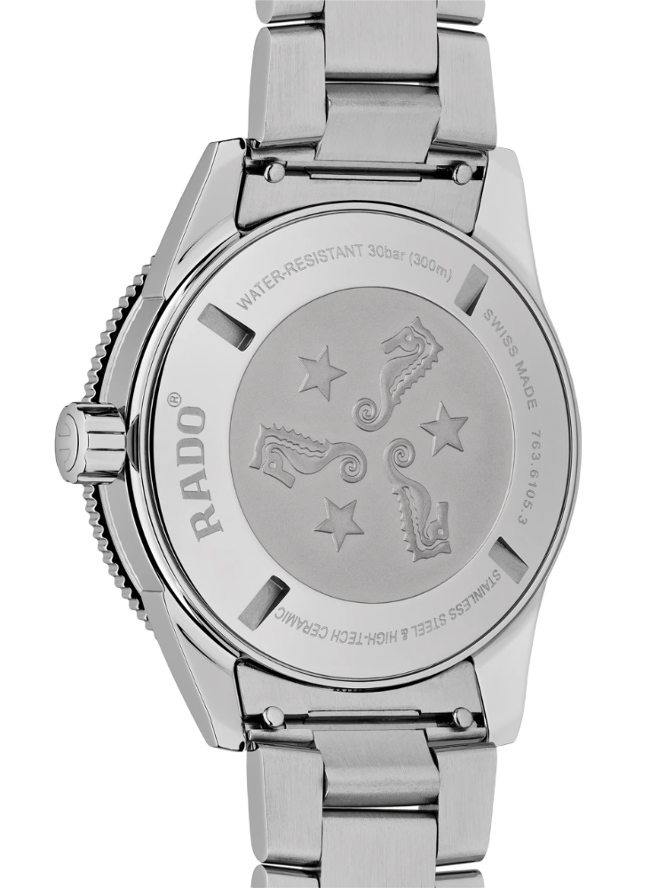 Премиальная модель обладает винтажным характером, чёрный циферблат обращает наше внимание на оригинальные стрелки в виде меча и стрелы. Часы обладают высокими показателями водонепроницаемости - сохранение герметичности до 30 бар, что стало возможным благодаря завинчивающейся задней крышке и заводной головке. Автоподзавод. Швейцарский калибр ETA C07.611 с 80-часовым резервом хода. Антибликовая обработка сапфирового стеклаСапфировое стеклоПрочный и надёжный материал из кристалла сапфира синтетического происхождения, характеризующийся особой твёрдостью и устойчивостью к царапинам и повреждениям.. Корпус из нержавеющей стали 316L, безельБезельВнешний ободок, закрепляющий стекло. В спортивных часах так называется поворотное кольцо с делениями на циферблате, выполняет роль таймера – замеряет отрезки времени на шкале. Неподвижный безель – элемент декора. Однонаправленно вращающийся безель на дайверских часах позволяет фиксировать моменты погружения и выныривания на поверхность. из высокотехнологичной керамикиВысокотехнологичная керамикаИнновационный запатентованный Rado материал с гладкой или матовой поверхностью. Керамика за счёт кристаллической структуры обладает повышенной устойчивостью от возникновения царапин. Материал способен принимать температуру тела человека, обеспечивая невероятный комфорт при ношении.. Прочный стальной браслет. Отображение числа. Диаметр корпуса: 42 мм.