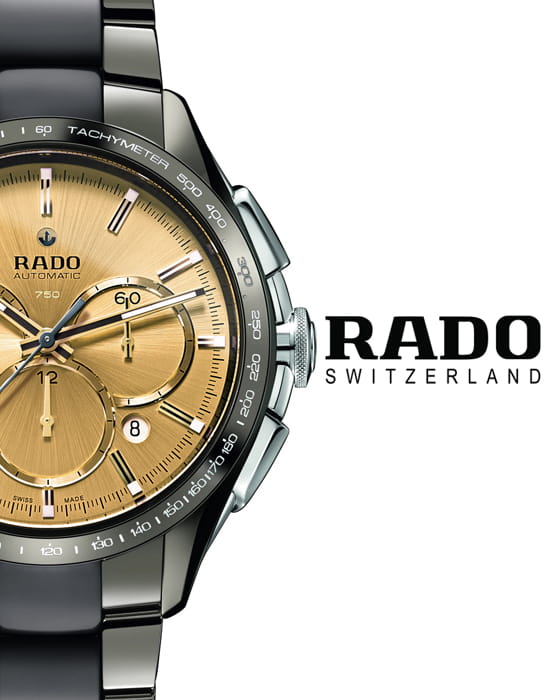 Спортивный хронографХронографФункция позволяет измерять отрезки времени с особой точностью: часы, минуты, секунды. Верным признаком хронографа является наличие на циферблате 3 дополнительных окошек-счётчиков. премиального сегмента позволит чувствовать себя на высоте при любых обстоятельствах, это идеальное дополнение делового или повседневного образа. Серый циферблат имеет золотистые цветовые акценты, придающие общему исполнению динамичности. Кварцевый высокоточный калибр ETA 251.274. Корпус из стали дополнен безелемБезельВнешний ободок, закрепляющий стекло. В спортивных часах так называется поворотное кольцо с делениями на циферблате, выполняет роль таймера – замеряет отрезки времени на шкале. Неподвижный безель – элемент декора. Однонаправленно вращающийся безель на дайверских часах позволяет фиксировать моменты погружения и выныривания на поверхность. из высокотехнологичной керамикиВысокотехнологичная керамикаИнновационный запатентованный Rado материал с гладкой или матовой поверхностью. Керамика за счёт кристаллической структуры обладает повышенной устойчивостью от возникновения царапин. Материал способен принимать температуру тела человека, обеспечивая невероятный комфорт при ношении.. Водостойкость 100 метров. Выпуклое стекло из сапфира с антибликовой поверхностью. Секундомер, календарь, тахиметрТахиметрРазмеченная шкала, располагается на ободке или безеле часов. Тахиметр позволяет рассчитать скорость на определённом участке пути, расстояние измеряется в километрах или милях.. Диаметр корпуса: 45 мм.