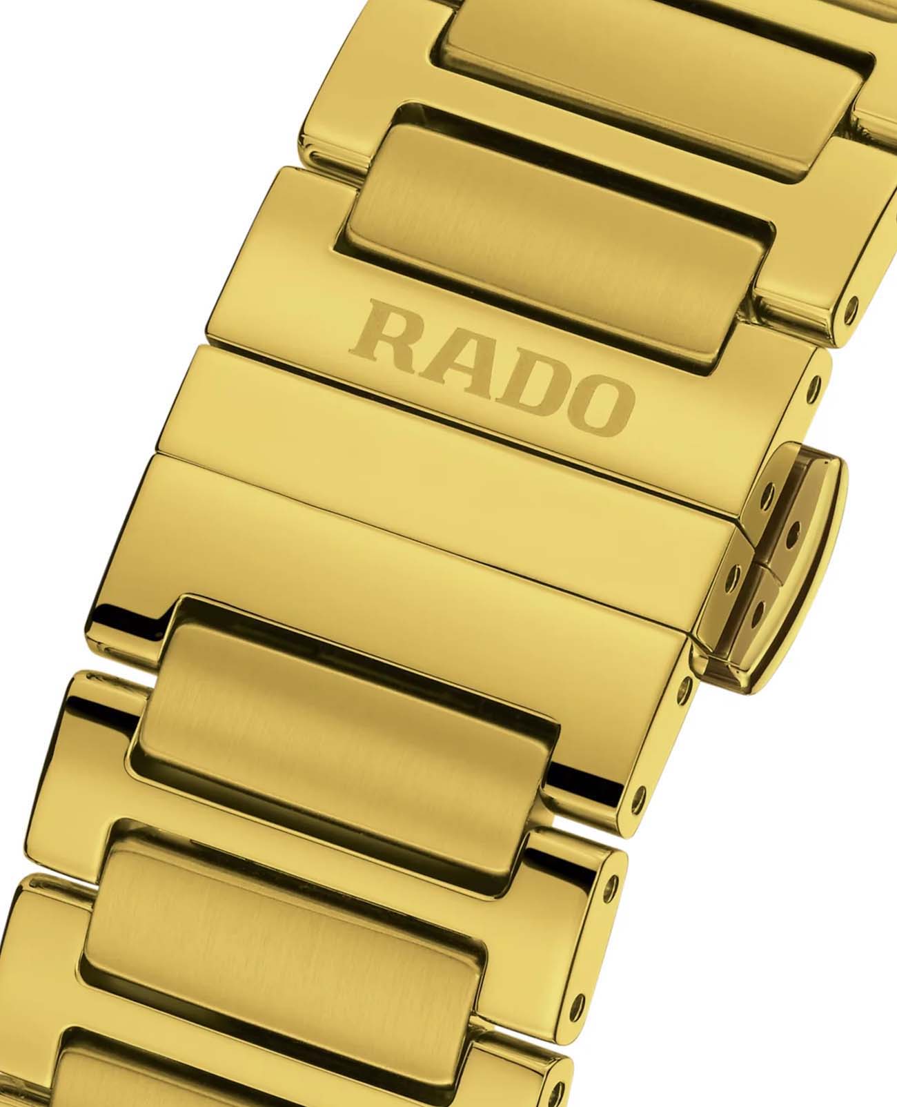 Мужские механические часы-скелетоны с автоподзаводом Rado DiaStar The Original Automatic R12161633. Корпус часов выполнен из нержавеющей стали с PVD-покрытиемPVDУльтратонкое покрытие наносится в технике вакуумного напыления, сочетает в себе нитрид титана особой прочности со слоем золота или оксида хрома. Несёт в себе декоративную или защитную функцию.. Стрелки с люминесцентным покрытиемЛюминесцентное покрытиеПозволяет считывать показания времени в темноте. Производители наносят на стрелки, часовые индексы, безель или поверхность циферблата светонакопительный состав, дающий холодное свечение. Super-LumiNova. Класс водозащиты: 100 метров, позволит плавать, нырять и заниматься другими водными видами спорта. Стальной браслет с PVD-покрытиемPVDУльтратонкое покрытие наносится в технике вакуумного напыления, сочетает в себе нитрид титана особой прочности со слоем золота или оксида хрома. Несёт в себе декоративную или защитную функцию. на застёжке-бабочке с кнопкамиЗастёжка "бабочка"Такой вид застёжки дополняется предохранителями, помогающими избежать случайного раскрытия браслета. Обладают изящным исполнением. .