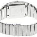 Часы Rado Sintra R13579912, произведение искусства и технологическое чудо, станут прекрасным дополнением к коллекции. Эти швейцарские часы оснащены кварцевым механизмом с указателем даты и тремя стрелками, заключенным в корпус из нержавеющей стали. Браслет изготовлен из высокотехнологичной керамикиВысокотехнологичная керамикаИнновационный запатентованный Rado материал с гладкой или матовой поверхностью. Керамика за счёт кристаллической структуры обладает повышенной устойчивостью от возникновения царапин. Материал способен принимать температуру тела человека, обеспечивая невероятный комфорт при ношении. с раскладной застёжкойРаскладная застёжкаТакой тип застёжки используется только на браслетах из металла. Она никогда не раскрывается полностью, происходит разделение на 2 и более частей. Раскладывающая застёжка снизит вероятность потери часов к минимуму.. Корпус украшен 48 бриллиантами (0,50 карата). Сапфировое стеклоСапфировое стеклоПрочный и надёжный материал из кристалла сапфира синтетического происхождения, характеризующийся особой твёрдостью и устойчивостью к царапинам и повреждениям. устойчивое к появлению царапин, обладающее высокой прозрачностью. Класс водозащиты: 30 метров, позволит защитить корпус от случайных брызг или капель дождя.