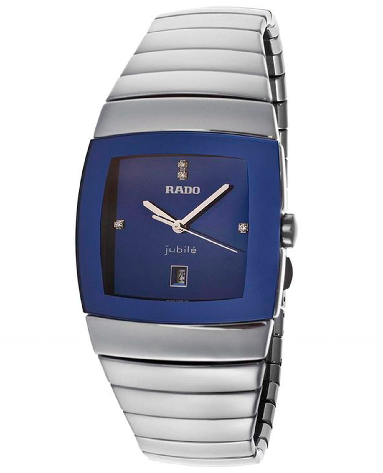 Часы Rado Sintra R13810702, произведение искусства и технологическое чудо, станут прекрасным дополнением к коллекции любого мужчины. Эти швейцарские часы оснащены кварцевым механизмом с указателем даты и тремя стрелками, заключенным в бочкообразный корпус из высокотехнологичной керамикиВысокотехнологичная керамикаИнновационный запатентованный Rado материал с гладкой или матовой поверхностью. Керамика за счёт кристаллической структуры обладает повышенной устойчивостью от возникновения царапин. Материал способен принимать температуру тела человека, обеспечивая невероятный комфорт при ношении.. Сапфировое стеклоСапфировое стеклоПрочный и надёжный материал из кристалла сапфира синтетического происхождения, характеризующийся особой твёрдостью и устойчивостью к царапинам и повреждениям. устойчивое к появлению царапин, обладающее высокой прозрачностью. Класс водозащиты: 30 метров, позволит защитить корпус от случайных брызг или капель дождя. Циферблат декорирован 4 бриллиантами. Браслет на раскладной застёжкеРаскладная застёжкаТакой тип застёжки используется только на браслетах из металла. Она никогда не раскрывается полностью, происходит разделение на 2 и более частей. Раскладывающая застёжка снизит вероятность потери часов к минимуму..
