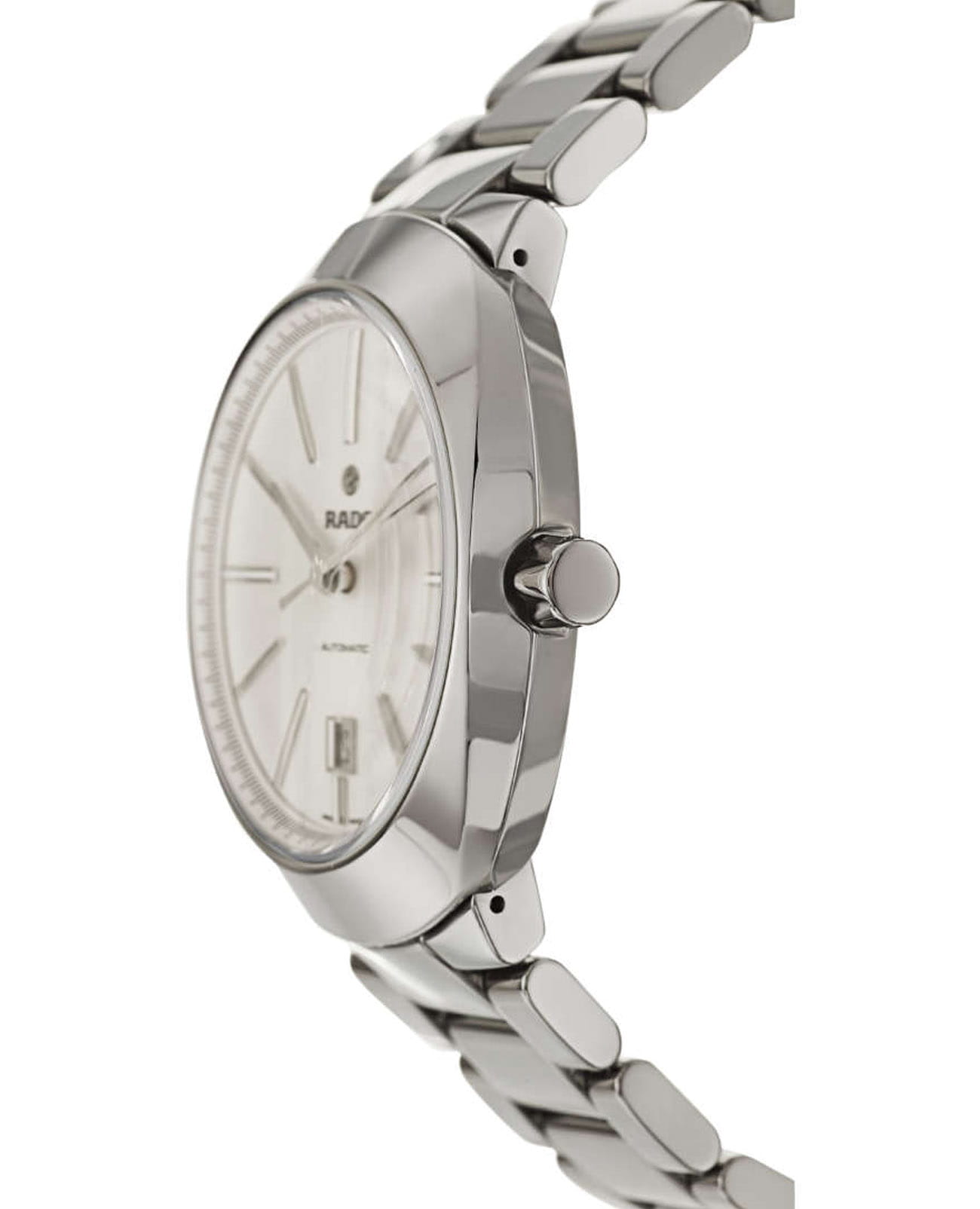Мужские механические швейцарские часы Rado D-Star R15760102. Сапфировое стеклоСапфировое стеклоПрочный и надёжный материал из кристалла сапфира синтетического происхождения, характеризующийся особой твёрдостью и устойчивостью к царапинам и повреждениям. устойчивое к мелким механическим повреждениям. Корпус часов изготовлен из высокотехнологичной керамикиВысокотехнологичная керамикаИнновационный запатентованный Rado материал с гладкой или матовой поверхностью. Керамика за счёт кристаллической структуры обладает повышенной устойчивостью от возникновения царапин. Материал способен принимать температуру тела человека, обеспечивая невероятный комфорт при ношении.. Окошко даты находится в положении 6 часов.  Класс водозащиты: 100 метров, позволит плавать, нырять и заниматься другими водными видами спорта. Браслет из высокотехнологичной керамикиВысокотехнологичная керамикаИнновационный запатентованный Rado материал с гладкой или матовой поверхностью. Керамика за счёт кристаллической структуры обладает повышенной устойчивостью от возникновения царапин. Материал способен принимать температуру тела человека, обеспечивая невероятный комфорт при ношении.  на раскладной застёжкеРаскладная застёжкаТакой тип застёжки используется только на браслетах из металла. Она никогда не раскрывается полностью, происходит разделение на 2 и более частей. Раскладывающая застёжка снизит вероятность потери часов к минимуму..