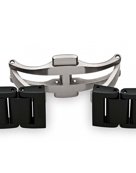Модель представляет премиальный сегмент, лаконичный стиль позволяет ей считаться универсальным аксессуаром для любого события. Шикарный безельБезельВнешний ободок, закрепляющий стекло. В спортивных часах так называется поворотное кольцо с делениями на циферблате, выполняет роль таймера – замеряет отрезки времени на шкале. Неподвижный безель – элемент декора. Однонаправленно вращающийся безель на дайверских часах позволяет фиксировать моменты погружения и выныривания на поверхность. декорирован драгоценными камнями – 60-ю бриллиантами в 0,228 карат. Швейцарский автоматический механизм ETA C07.611 с запасом хода на 80 часов. Надёжные корпус и браслет из высокотехнологичной керамикиВысокотехнологичная керамикаИнновационный запатентованный Rado материал с гладкой или матовой поверхностью. Керамика за счёт кристаллической структуры обладает повышенной устойчивостью от возникновения царапин. Материал способен принимать температуру тела человека, обеспечивая невероятный комфорт при ношении.. Стекло из сапфира устойчиво к возникновению царапин. Водонепроницаемость 5 бар. . Апертура даты. Диаметр корпуса: 40 мм.
