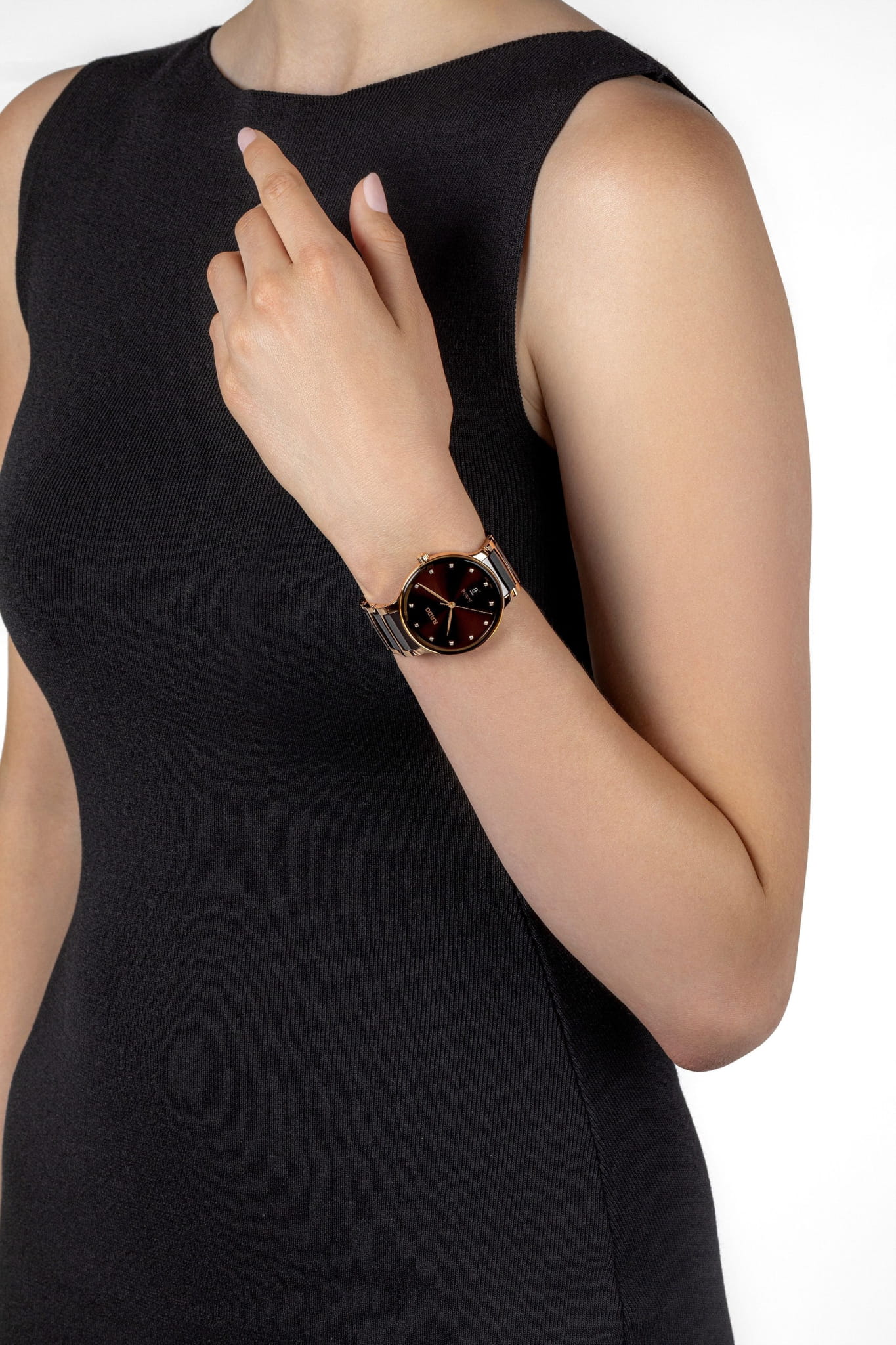 Швейцарские часы с надёжным кварцевым механизмом Rado Centrix Diamonds R30023732. Корпус часов изготовлен из нержавеющей стали. Браслет из стали и высокотехнологичной керамикиВысокотехнологичная керамикаИнновационный запатентованный Rado материал с гладкой или матовой поверхностью. Керамика за счёт кристаллической структуры обладает повышенной устойчивостью от возникновения царапин. Материал способен принимать температуру тела человека, обеспечивая невероятный комфорт при ношении. на раскладной застёжкеРаскладная застёжкаТакой тип застёжки используется только на браслетах из металла. Она никогда не раскрывается полностью, происходит разделение на 2 и более частей. Раскладывающая застёжка снизит вероятность потери часов к минимуму.. Сапфировое стеклоСапфировое стеклоПрочный и надёжный материал из кристалла сапфира синтетического происхождения, характеризующийся особой твёрдостью и устойчивостью к царапинам и повреждениям. устойчивое к мелким механическим повреждениям. Класс водозащиты: 50 метров, позволит защитить корпус от случайных брызг или капель дождя. Окошко даты находится в положении 6 часов. Циферблат инкрустирован бриллантами.