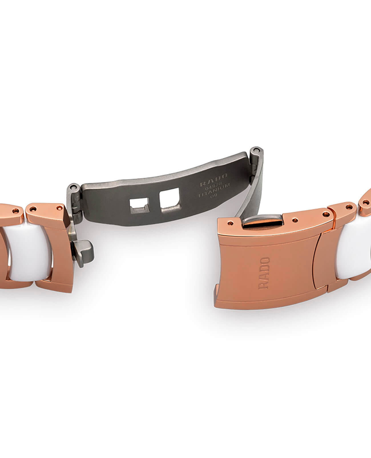 Швейцарские механические часы-скелетоны с автоподзаводом Rado Centrix Automatic Diamonds Open Heart R30248902. Сапфировое стеклоСапфировое стеклоПрочный и надёжный материал из кристалла сапфира синтетического происхождения, характеризующийся особой твёрдостью и устойчивостью к царапинам и повреждениям. устойчивое к мелким механическим повреждениям. Корпус часов изготовлен из нержавеющей стали с PVD-покрытиемPVDУльтратонкое покрытие наносится в технике вакуумного напыления, сочетает в себе нитрид титана особой прочности со слоем золота или оксида хрома. Несёт в себе декоративную или защитную функцию.. Класс водозащиты: 30 метров, позволит защитить корпус от случайных брызг или капель дождя. Браслет из стали PVD-покрытиемPVDУльтратонкое покрытие наносится в технике вакуумного напыления, сочетает в себе нитрид титана особой прочности со слоем золота или оксида хрома. Несёт в себе декоративную или защитную функцию. и высокотехнологичной керамикиВысокотехнологичная керамикаИнновационный запатентованный Rado материал с гладкой или матовой поверхностью. Керамика за счёт кристаллической структуры обладает повышенной устойчивостью от возникновения царапин. Материал способен принимать температуру тела человека, обеспечивая невероятный комфорт при ношении. на раскладной застёжкеРаскладная застёжкаТакой тип застёжки используется только на браслетах из металла. Она никогда не раскрывается полностью, происходит разделение на 2 и более частей. Раскладывающая застёжка снизит вероятность потери часов к минимуму..