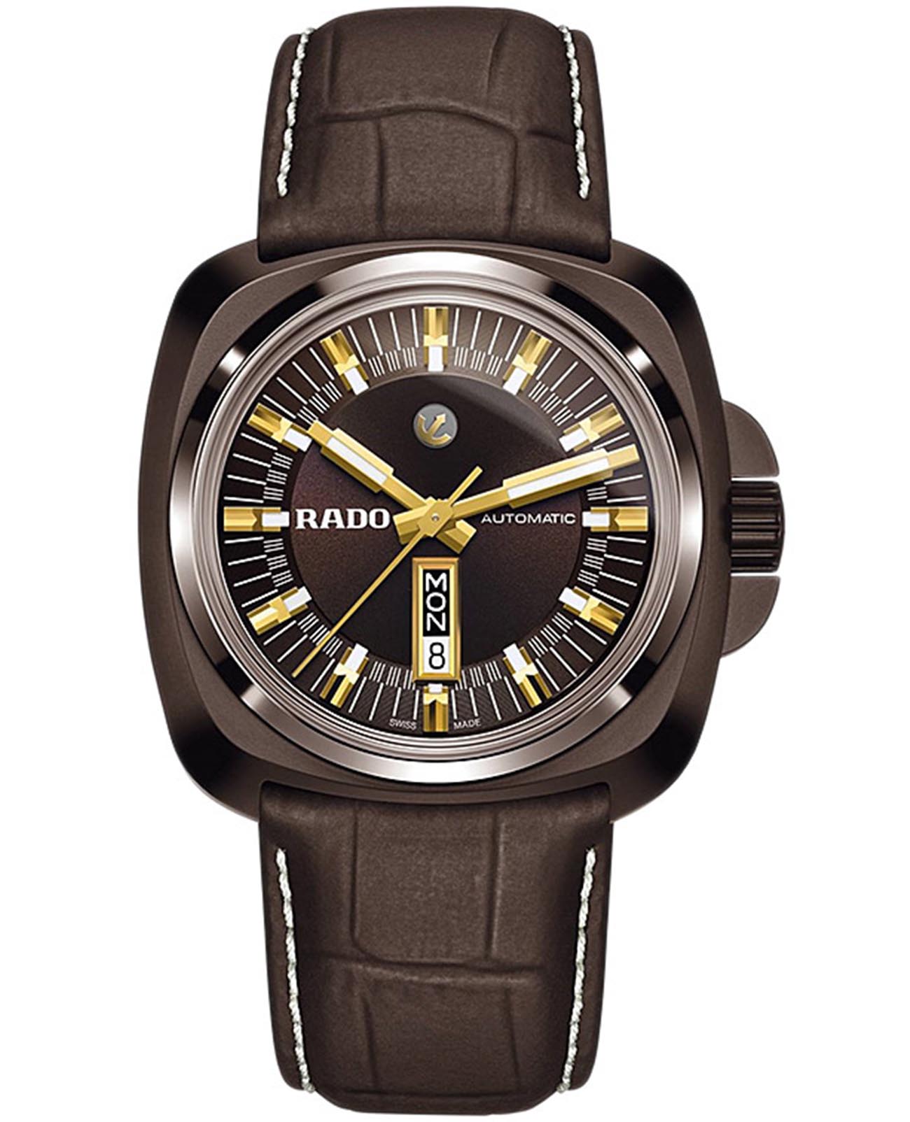 Брендовая модель стала гармоничным воплощением настоящего и прошлого, взяв только самое лучшее. Оригинальный массивный корпус с золотистыми элементами станет превосходным дополнением к дорогому классическому костюму. Швейцарский автоматический калибр ETA C07.621 с увеличенным резервом хода до 80 часов. Винтажный ремешок из натуральной кожи. Корпус из высокотехнологичной керамикиВысокотехнологичная керамикаИнновационный запатентованный Rado материал с гладкой или матовой поверхностью. Керамика за счёт кристаллической структуры обладает повышенной устойчивостью от возникновения царапин. Материал способен принимать температуру тела человека, обеспечивая невероятный комфорт при ношении.. Сапфировое стеклоСапфировое стеклоПрочный и надёжный материал из кристалла сапфира синтетического происхождения, характеризующийся особой твёрдостью и устойчивостью к царапинам и повреждениям. с антибликовой обработкой. Люминесцентная подсветкаЛюминесцентное покрытиеПозволяет считывать показания времени в темноте. Производители наносят на стрелки, часовые индексы, безель или поверхность циферблата светонакопительный состав, дающий холодное свечение.. Водозащита 100 метров, позволит плавать, нырять и заниматься другими водными видами спорта.Раскладная застёжкаРаскладная застёжкаТакой тип застёжки используется только на браслетах из металла. Она никогда не раскрывается полностью, происходит разделение на 2 и более частей. Раскладывающая застёжка снизит вероятность потери часов к минимуму.. Апертура даты и дня недели. Диаметр корпуса: 46 мм.