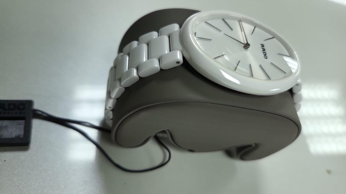 Это сенсорные часы, оснащенные двумя чипами. Время можно переустанавливать всего лишь одним касанием. Модель отлично сидит на руке. Корпус выполнен из керамики устойчивой к царапинам.  Сапфировое стекло с антибликовым покрытием. Гарантия 2 года.