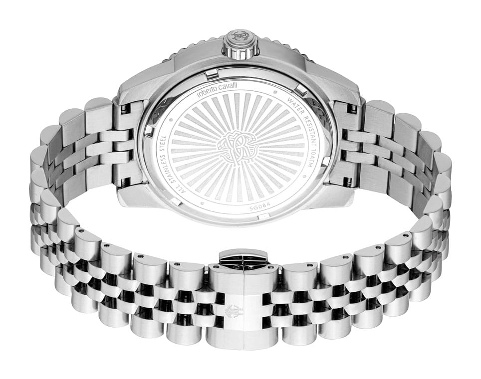 Погрузитесь в мир роскоши и безупречного стиля с мужскими наручными часами ROBERTO CAVALLI RC5G084M1055. Эти часы – воплощение смелого дизайна и итальянской элегантности, созданные для мужчины, который ценит внимание к деталям и не боится заявить о себе. Круглый корпус диаметром 42 мм выполнен из нержавеющей стали, толщина корпуса составляет 11 мм, что придает модели выразительный внешний вид и надежную защиту от внешних воздействий. Циферблат, искусно оформленный фирменными элементами Roberto Cavalli, притягивает взгляд и подчеркивает ваш безупречный вкус. Часы оснащены кварцевым механизмом, также обладают функцией отображения даты, что делает их удобными для ежедневного использования. Минеральное стеклоМинеральное стеклоМинеральное стекло представляет собой искусственно выращенный минерал кварца. Такое стекло отличается особой устойчивостью к повреждениям и царапинам. Уступает по некоторым качествам сапфировому стеклу. защищает часы от царапин. Водозащита 100 метров, позволит плавать, нырять и заниматься другими водными видами спорта. Стальной браслет на застёжке-бабочке с кнопкамиЗастёжка "бабочка"Такой вид застёжки дополняется предохранителями, помогающими избежать случайного раскрытия браслета. Обладают изящным исполнением. обеспечивает комфортное ношение. Поворотный безельБезельВнешний ободок, закрепляющий стекло. В спортивных часах так называется поворотное кольцо с делениями на циферблате, выполняет роль таймера – замеряет отрезки времени на шкале. Неподвижный безель – элемент декора. Однонаправленно вращающийся безель на дайверских часах позволяет фиксировать моменты погружения и выныривания на поверхность. с PVD-покрытиемPVDУльтратонкое покрытие наносится в технике вакуумного напыления, сочетает в себе нитрид титана особой прочности со слоем золота или оксида хрома. Несёт в себе декоративную или защитную функцию.. Стрелки и метки с люминесцентным покрытиемЛюминесцентное покрытиеПозволяет считывать показания времени в темноте. Производители наносят на стрелки, часовые индексы, безель или поверхность циферблата светонакопительный состав, дающий холодное свечение. обеспечивают отличную читаемость в любое время суток.