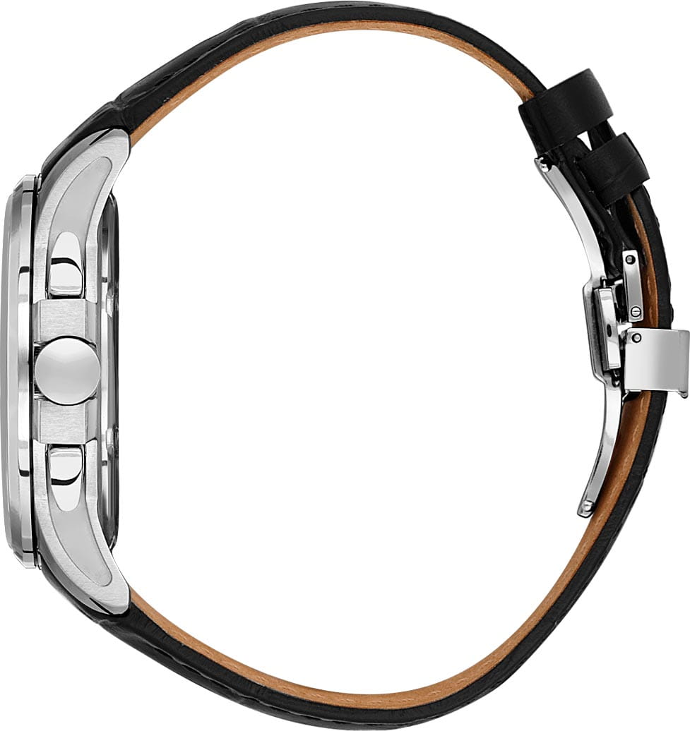Мужские кварцевые часы Santa Barbara Polo & Racquet Club — это идеальный выбор для тех, кто ценит практичность и стиль. Корпус диаметром 43 мм выполнен из нержавеющей стали 316L с полированной отделкой. Циферблат серебристого цвета украшен узором и фирменным логотипом, дополнен накладными метками в виде штрихов и арабской цифрой 12. Указатели дня недели и даты вынесены на отдельные субциферблаты, также присутствует индикация 24-часового формата времени. Стрелки и метки с люминесцентным покрытиемЛюминесцентное покрытиеПозволяет считывать показания времени в темноте. Производители наносят на стрелки, часовые индексы, безель или поверхность циферблата светонакопительный состав, дающий холодное свечение., обеспечивающим хорошую читаемость в темноте. Циферблат защищён минеральным стекломМинеральное стеклоМинеральное стекло представляет собой искусственно выращенный минерал кварца. Такое стекло отличается особой устойчивостью к повреждениям и царапинам. Уступает по некоторым качествам сапфировому стеклу.. Часы оснащены кожаным ремешком с застёжкой «бабочка» с кнопкамиЗастёжка "бабочка"Такой вид застёжки дополняется предохранителями, помогающими избежать случайного раскрытия браслета. Обладают изящным исполнением. . Водонепроницаемость 50 м позволяет использовать часы в повседневных условиях. Идеальный выбор для тех, кто ценит классический дизайн, точность и надёжность.