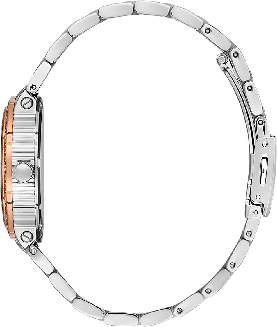 Женские кварцевые часы Santa Barbara Polo & Racquet Club Unique SB.1.10553-5 — это стильный аксессуар, подчеркивающий индивидуальность. Изысканный корпус диаметром 34 мм выполнен из нержавеющей стали 316L с безелемБезельВнешний ободок, закрепляющий стекло. В спортивных часах так называется поворотное кольцо с делениями на циферблате, выполняет роль таймера – замеряет отрезки времени на шкале. Неподвижный безель – элемент декора. Однонаправленно вращающийся безель на дайверских часах позволяет фиксировать моменты погружения и выныривания на поверхность. с IP-покрытиемIP-покрытиеМетод ионного напыления. Демонстрирует повышенную устойчивость к истиранию, окислению и химическим веществам. Под воздействием высокого давления и температуры около 1500°C молекулы металла надёжно соединяются с частицами корпуса часов. и украшенным кристаллами. Изящный циферблат дополнен крупными римскими индексами, а также фирменным логотипом. Стрелки в стиле Breguet с люминесцентным покрытиемЛюминесцентное покрытиеПозволяет считывать показания времени в темноте. Производители наносят на стрелки, часовые индексы, безель или поверхность циферблата светонакопительный состав, дающий холодное свечение., обеспечивающим хорошую читаемость в темноте. Защиту циферблата обеспечивает минеральное стеклоМинеральное стеклоМинеральное стекло представляет собой искусственно выращенный минерал кварца. Такое стекло отличается особой устойчивостью к повреждениям и царапинам. Уступает по некоторым качествам сапфировому стеклу., устойчивое к мелким механическим повреждениям. Часы оснащены надежным стальным браслетом с частичным IP-покрытиемIP-покрытиеМетод ионного напыления. Демонстрирует повышенную устойчивость к истиранию, окислению и химическим веществам. Под воздействием высокого давления и температуры около 1500°C молекулы металла надёжно соединяются с частицами корпуса часов. с раскладной застёжкойРаскладная застёжкаТакой тип застёжки используется только на браслетах из металла. Она никогда не раскрывается полностью, происходит разделение на 2 и более частей. Раскладывающая застёжка снизит вероятность потери часов к минимуму.. Водонепроницаемость 50 м позволяет использовать часы в повседневных условиях. Идеальный выбор для тех, кто ценит элегантный дизайн и качество.