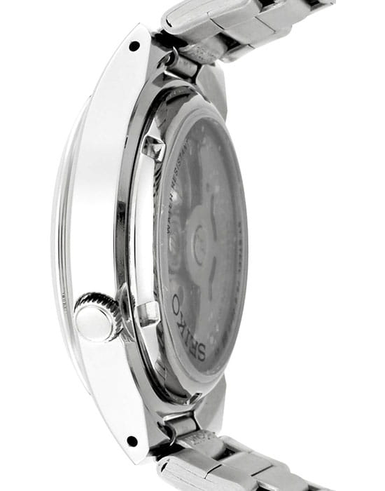 Наручные часы имеют чёрный циферблат с красной секундной стрелкой, дополненный узором в спортивном стиле. Компактная модель привлекает универсальным исполнением, будет хорошо смотреться с повседневной, деловой, спортивной одеждой. Аксессуар сделан из стали 316L, серебристый металл устойчив к деформации, повреждениям, коррозии. Минеральное стеклоМинеральное стеклоМинеральное стекло представляет собой искусственно выращенный минерал кварца. Такое стекло отличается особой устойчивостью к повреждениям и царапинам. Уступает по некоторым качествам сапфировому стеклу. устойчивое к мелким механическим повреждениям. Внутри надёжного корпуса находится японский автоматический механизм Seiko 7S26, характеризующийся запасом хода до 40 часов. Наблюдать за его работой можно через прозрачную заднюю крышку. Стрелки имеют люминесцентную подсветкуЛюминесцентное покрытиеПозволяет считывать показания времени в темноте. Производители наносят на стрелки, часовые индексы, безель или поверхность циферблата светонакопительный состав, дающий холодное свечение.. Диаметр корпуса: 36 мм. Окошки дня недели и даты находятся в положении 3 часа.