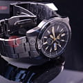 Современные японские наручные мужские часы. Круглый корпус и браслет часов выполнены из высокопрочной стали с антикоррозийными свойствами. Темный фон циферблата и стальные элементы дизайна. Водонепроницаемость 5 ATM. Минеральное стекло Hardlex, устойчивое к появлению царапин.