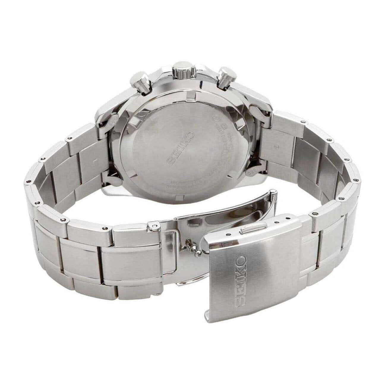 Мужские кварцевые часы Seiko SBTR011 из коллекции Spirit — это сочетание точности, функциональности и современного дизайна. Часы оснащены японским механизмом калибра 8T63 с функцией хронографаХронографФункция позволяет измерять отрезки времени с особой точностью: часы, минуты, секунды. Верным признаком хронографа является наличие на циферблате 3 дополнительных окошек-счётчиков., включающей секундомер с точностью 1/5 секунды и временем измерения до 1 часа, отображаемый центральной стрелкой. Также реализована функция тахиметраТахиметрРазмеченная шкала, располагается на ободке или безеле часов. Тахиметр позволяет рассчитать скорость на определённом участке пути, расстояние измеряется в километрах или милях.. Центральные часовая и минутная стрелки дополнены вынесенной секундной стрелкой на отдельном циферблате, окошко даты расположено между отметками 4 и 5 часов. Циферблат синего цвета оформлен штриховыми метками, стрелки и метки покрыты люминесцентным покрытиемЛюминесцентное покрытиеПозволяет считывать показания времени в темноте. Производители наносят на стрелки, часовые индексы, безель или поверхность циферблата светонакопительный состав, дающий холодное свечение. LumiBrite, обеспечивающим хорошую читаемость в темноте. Корпус выполнен из нержавеющей стали и защищён прочным минеральным стеклом Hardlex, устойчивым к царапинам. Браслет из нержавеющей стали фиксируется на раскладной застёжкеРаскладная застёжкаТакой тип застёжки используется только на браслетах из металла. Она никогда не раскрывается полностью, происходит разделение на 2 и более частей. Раскладывающая застёжка снизит вероятность потери часов к минимуму.. Водонепроницаемость 100 м позволяет использовать часы для плавания, ныряния и других водных видов спорта. Модель подходит как для повседневного, так и для делового образа.