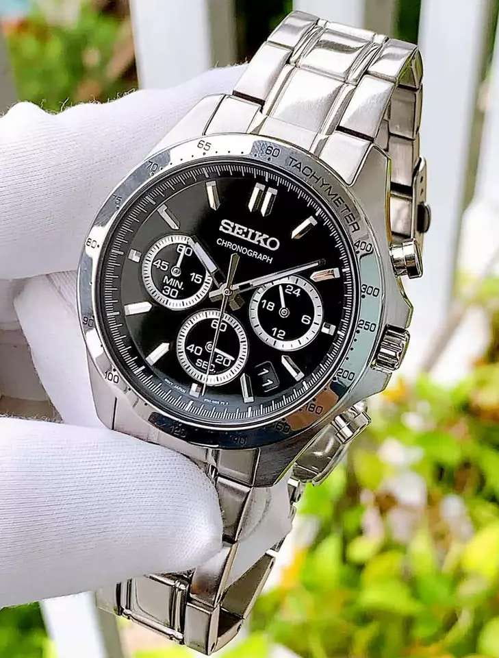 Мужские кварцевые часы Seiko SBTR013 из коллекции Spirit — это сочетание точности, функциональности и современного дизайна. Часы оснащены японским механизмом калибра 8T63 с функцией хронографаХронографФункция позволяет измерять отрезки времени с особой точностью: часы, минуты, секунды. Верным признаком хронографа является наличие на циферблате 3 дополнительных окошек-счётчиков., включающей секундомер с точностью 1/5 секунды и временем измерения до 1 часа, отображаемый центральной стрелкой. Также реализована функция тахиметраТахиметрРазмеченная шкала, располагается на ободке или безеле часов. Тахиметр позволяет рассчитать скорость на определённом участке пути, расстояние измеряется в километрах или милях.. Центральные часовая и минутная стрелки дополнены вынесенной секундной стрелкой на отдельном циферблате, окошко даты расположено между отметками 4 и 5 часов. Циферблат чёрного цвета оформлен штриховыми метками, стрелки и метки покрыты люминесцентным покрытиемЛюминесцентное покрытиеПозволяет считывать показания времени в темноте. Производители наносят на стрелки, часовые индексы, безель или поверхность циферблата светонакопительный состав, дающий холодное свечение. LumiBrite, обеспечивающим хорошую читаемость в темноте. Корпус выполнен из нержавеющей стали и защищён прочным минеральным стеклом Hardlex, устойчивым к царапинам. Браслет из нержавеющей стали фиксируется на раскладной застёжкеРаскладная застёжкаТакой тип застёжки используется только на браслетах из металла. Она никогда не раскрывается полностью, происходит разделение на 2 и более частей. Раскладывающая застёжка снизит вероятность потери часов к минимуму.. Водонепроницаемость 100 м позволяет использовать часы для плавания, ныряния и других водных видов спорта. Модель подходит как для повседневного, так и для делового образа.
