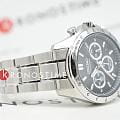 Мужские кварцевые часы Seiko SBTR013 из коллекции Spirit — это сочетание точности, функциональности и современного дизайна. Часы оснащены японским механизмом калибра 8T63 с функцией хронографаХронографФункция позволяет измерять отрезки времени с особой точностью: часы, минуты, секунды. Верным признаком хронографа является наличие на циферблате 3 дополнительных окошек-счётчиков., включающей секундомер с точностью 1/5 секунды и временем измерения до 1 часа, отображаемый центральной стрелкой. Также реализована функция тахиметраТахиметрРазмеченная шкала, располагается на ободке или безеле часов. Тахиметр позволяет рассчитать скорость на определённом участке пути, расстояние измеряется в километрах или милях.. Центральные часовая и минутная стрелки дополнены вынесенной секундной стрелкой на отдельном циферблате, окошко даты расположено между отметками 4 и 5 часов. Циферблат чёрного цвета оформлен штриховыми метками, стрелки и метки покрыты люминесцентным покрытиемЛюминесцентное покрытиеПозволяет считывать показания времени в темноте. Производители наносят на стрелки, часовые индексы, безель или поверхность циферблата светонакопительный состав, дающий холодное свечение. LumiBrite, обеспечивающим хорошую читаемость в темноте. Корпус выполнен из нержавеющей стали и защищён прочным минеральным стеклом Hardlex, устойчивым к царапинам. Браслет из нержавеющей стали фиксируется на раскладной застёжкеРаскладная застёжкаТакой тип застёжки используется только на браслетах из металла. Она никогда не раскрывается полностью, происходит разделение на 2 и более частей. Раскладывающая застёжка снизит вероятность потери часов к минимуму.. Водонепроницаемость 100 м позволяет использовать часы для плавания, ныряния и других водных видов спорта. Модель подходит как для повседневного, так и для делового образа.
