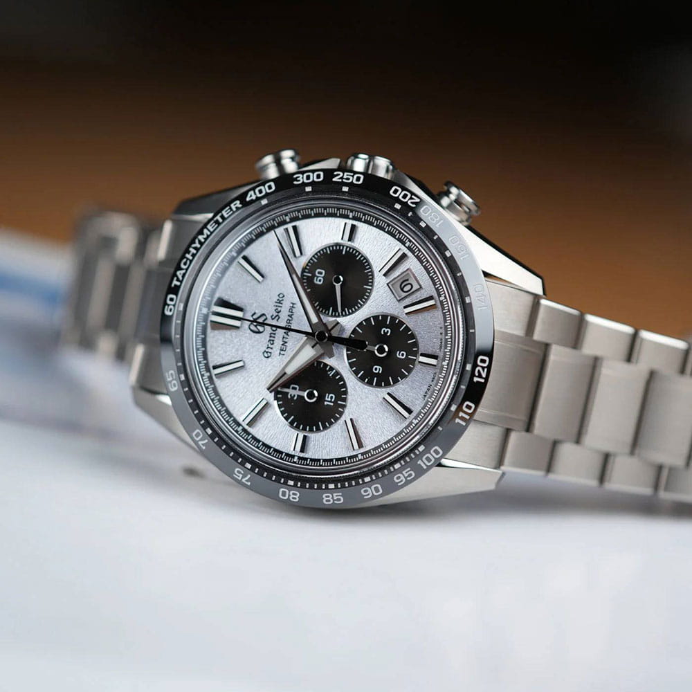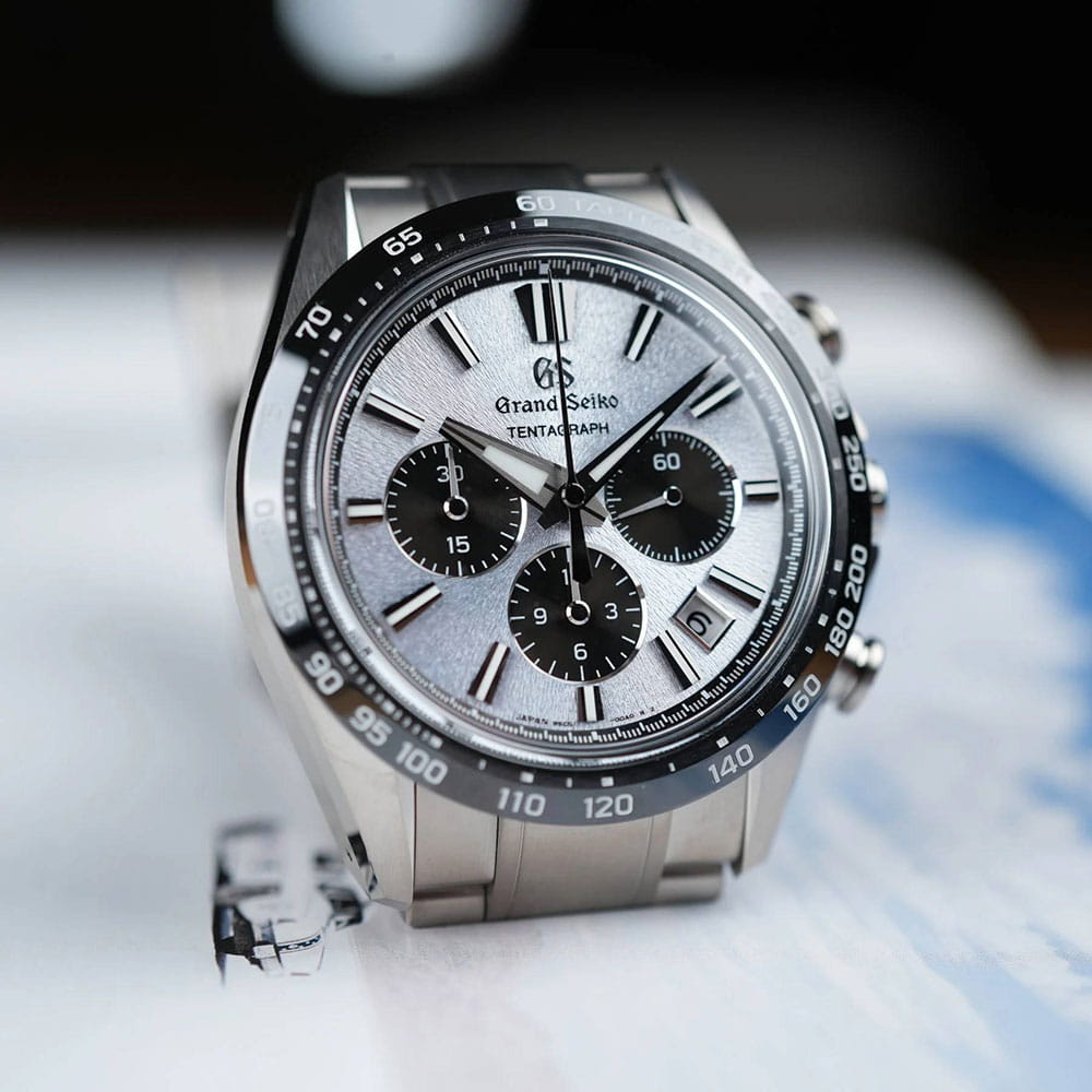 Модель SLGC007G из коллекции Grand Seiko Evolution 9 — это высокоточный дайверский хронографХронографФункция позволяет измерять отрезки времени с особой точностью: часы, минуты, секунды. Верным признаком хронографа является наличие на циферблате 3 дополнительных окошек-счётчиков. с секундомеромСекундомерСекундоме́р — прибор, способный измерять интервалы времени с точностью до долей секунды., сочетающий в себе передовые технологии и японскую эстетику. Корпус и браслет выполнены из титанового сплава Brilliant Hard Titanium, обеспечивая лёгкость и устойчивость к коррозии. Циферблат с матовой отделкой и крупными метками покрытыми люминесцентным покрытиемЛюминесцентное покрытиеПозволяет считывать показания времени в темноте. Производители наносят на стрелки, часовые индексы, безель или поверхность циферблата светонакопительный состав, дающий холодное свечение. гарантирует отличную читаемость в любых условиях. Часы оснащены автоматическим механизмом 9SC5. Диаметр корпуса составляет 43.2 мм, толщина 15.3 мм. Циферблат защищён сапфировым стекломСапфировое стеклоПрочный и надёжный материал из кристалла сапфира синтетического происхождения, характеризующийся особой твёрдостью и устойчивостью к царапинам и повреждениям. с антибликовым покрытиемАнтибликовое покрытиеСлой оксида металла в 0,13-0,3 микрон, благодаря которому стекло часов не бликует и не отражает свет. Антибликовое покрытие уменьшает отражение света в 10 раз, обеспечивая отличную читаемость показателей циферблата. на внутренней стороне. Установлена раскладная застёжка с фиксаторомРаскладная застёжкаТакой тип застёжки используется только на браслетах из металла. Она никогда не раскрывается полностью, происходит разделение на 2 и более частей. Раскладывающая застёжка снизит вероятность потери часов к минимуму. обеспечивает комфортное ношение. Шкала тахиметраТахиметрРазмеченная шкала, располагается на ободке или безеле часов. Тахиметр позволяет рассчитать скорость на определённом участке пути, расстояние измеряется в километрах или милях. на керамическом безелеБезельВнешний ободок, закрепляющий стекло. В спортивных часах так называется поворотное кольцо с делениями на циферблате, выполняет роль таймера – замеряет отрезки времени на шкале. Неподвижный безель – элемент декора. Однонаправленно вращающийся безель на дайверских часах позволяет фиксировать моменты погружения и выныривания на поверхность.. Модель обладает водонепроницаемостью до 100 метров идеальным выбором для профессиональных дайверов и ценителей надёжных часов.