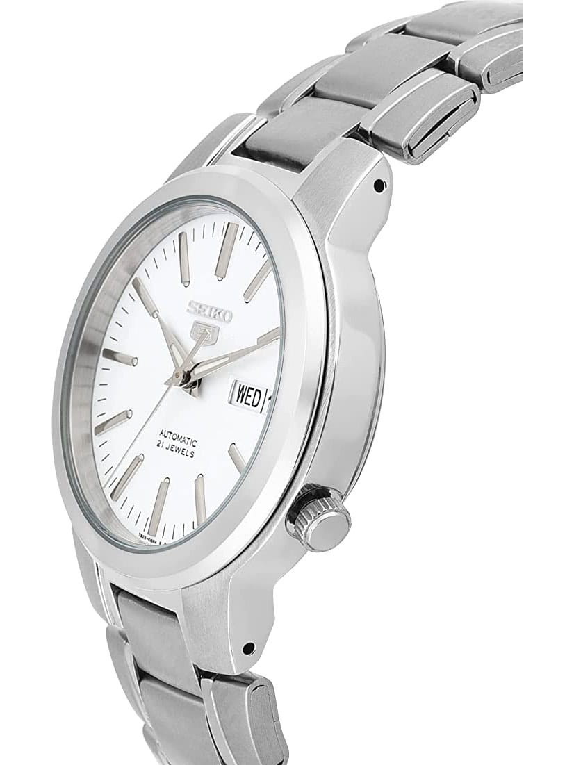 Seiko 5 SNKA01K1 — мужская автоматическая модель из классической линейки Seiko 5 Regular, сочетающая практичность и сдержанный дизайн. Корпус диаметром 37 мм и браслет выполнены из нержавеющей стали, создавая универсальный и надёжный образ. Защитную функцию выполняет минеральное стеклоМинеральное стеклоМинеральное стекло представляет собой искусственно выращенный минерал кварца. Такое стекло отличается особой устойчивостью к повреждениям и царапинам. Уступает по некоторым качествам сапфировому стеклу. Hardlex, устойчивое к повседневным повреждениям. В основе модели лежит автоматический калибр 7S26 с функциями часов, минут, секунд, даты и дня недели. Водозащита составляет 30 м, что защищает часы от брызг и дождя. Циферблат оформлен в лаконичном стиле с арабскими цифрами и стрелками, покрытыми люминесцентным покрытиемЛюминесцентное покрытиеПозволяет считывать показания времени в темноте. Производители наносят на стрелки, часовые индексы, безель или поверхность циферблата светонакопительный состав, дающий холодное свечение. для читаемости в темноте. Браслет из нержавеющей стали оснащён раскладной застёжкойРаскладная застёжкаТакой тип застёжки используется только на браслетах из металла. Она никогда не раскрывается полностью, происходит разделение на 2 и более частей. Раскладывающая застёжка снизит вероятность потери часов к минимуму., обеспечивающей удобство и надёжность при ежедневном использовании.