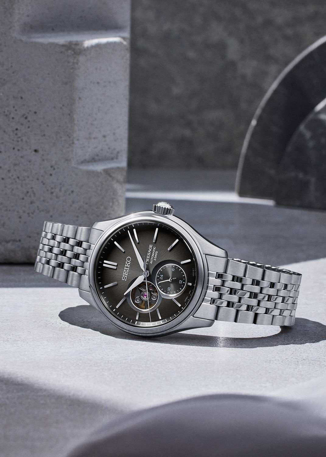 Механические часы Seiko Presage Classic SPB471 — это сочетание японского мастерства, технологичности и эстетики. Серия вдохновлена цветами и текстурами традиционных японских ремёсел, что нашло своё отражение в изысканном дизайне и высокой функциональности модели. Часы оснащены калибром 6R5J — надёжным механизмом с автоподзаводом и возможностью ручной подзаводки. Механизм работает на частоте 21 600 полуколебаний в час, имеет 24 драгоценных камня и обеспечивает запас хода до 72 часов. Также реализована функция стоп-секунды для точной установки времени и защита от магнитных полей до 4800 А/м. Через прозрачное окошко на циферблате можно наблюдать за работой механизма, а также отслеживать время в двух форматах — 12-часовом и 24-часовом. Циферблат чёрного цвета выполнен в стиле «широ-иро» — в оттенке неотбелённого шелка, который при разном освещении играет глубокими переливами. Его поверхность украшена тонкой текстурой, создающей ощущение благородства и изысканности. Метки выполнены в виде аккуратных штрихов, а центральные стрелки обеспечивают чёткость и лёгкость считывания информации. Защиту циферблата обеспечивает сапфировое стеклоСапфировое стеклоПрочный и надёжный материал из кристалла сапфира синтетического происхождения, характеризующийся особой твёрдостью и устойчивостью к царапинам и повреждениям. выпуклой формы с антибликовым покрытием с обеих сторон. Корпус изготовлен из нержавеющей стали, а задняя крышка — завинчивающаяся и прозрачная, что позволяет рассмотреть детали работы механизма. Браслет выполнен из стали и оснащён трёхсгибной раскладной застёжкойРаскладная застёжкаТакой тип застёжки используется только на браслетах из металла. Она никогда не раскрывается полностью, происходит разделение на 2 и более частей. Раскладывающая застёжка снизит вероятность потери часов к минимуму., обеспечивающей комфорт и уверенную фиксацию на запястье. Часы водонепроницаемы до 100 метров , что позволяет использовать их при плавании или занятиях водными видами спорта без глубокого погружения. Эти часы станут универсальным аксессуаром для тех, кто ценит сочетание культурного наследия, технологий и эстетики — идеальный выбор для повседневной носки и торжественных случаев.
